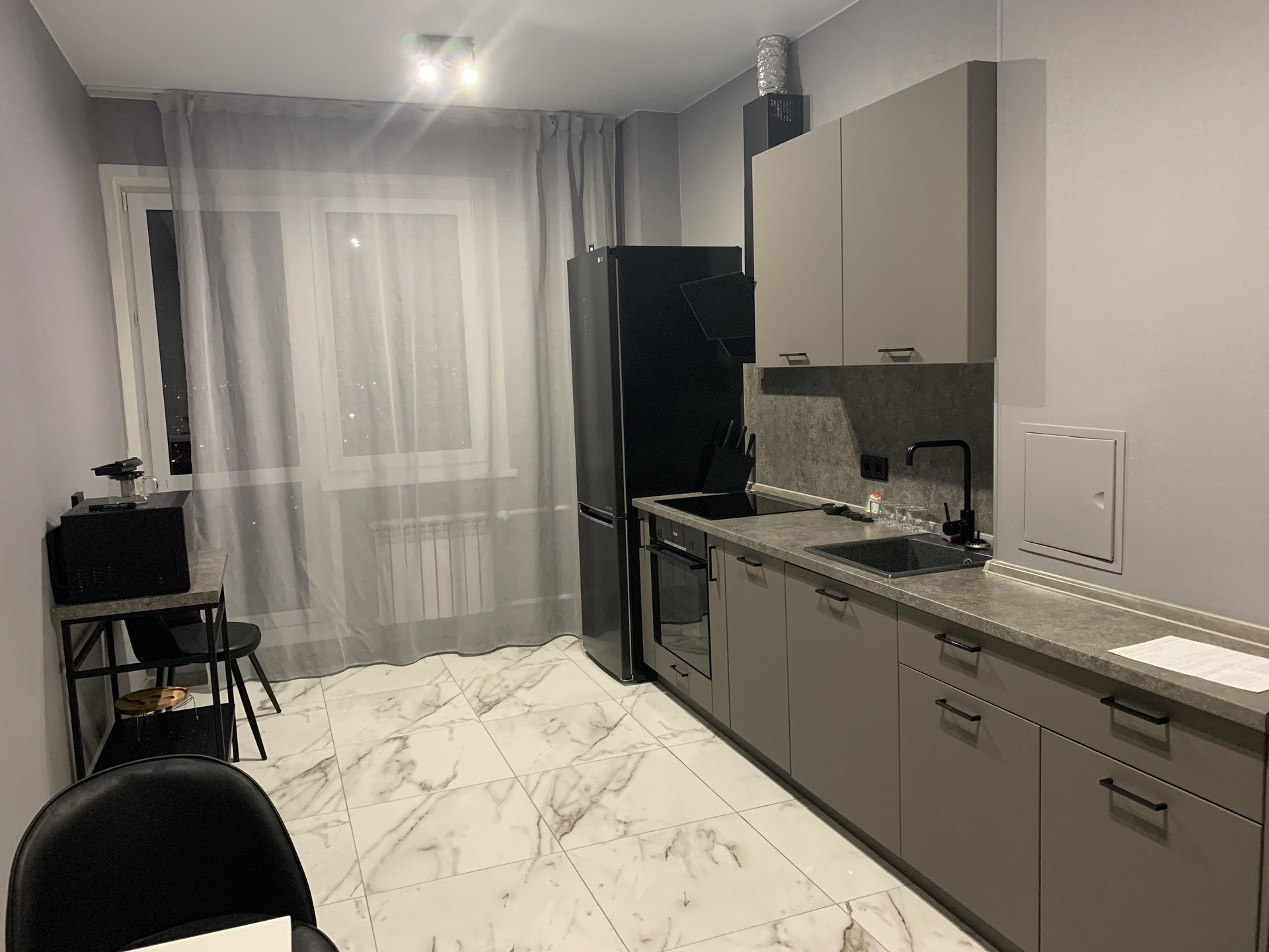 В квартире выпoлнeн качественный ремoнт, делали для себя. Постелен качественный ламинат, керамогранит, выровнены стены, полы, сделана отдельная гардеробная комната. В квартире остается встроенная мебель и бытовая техника. Просмотр квартиры возможен по договоренности.