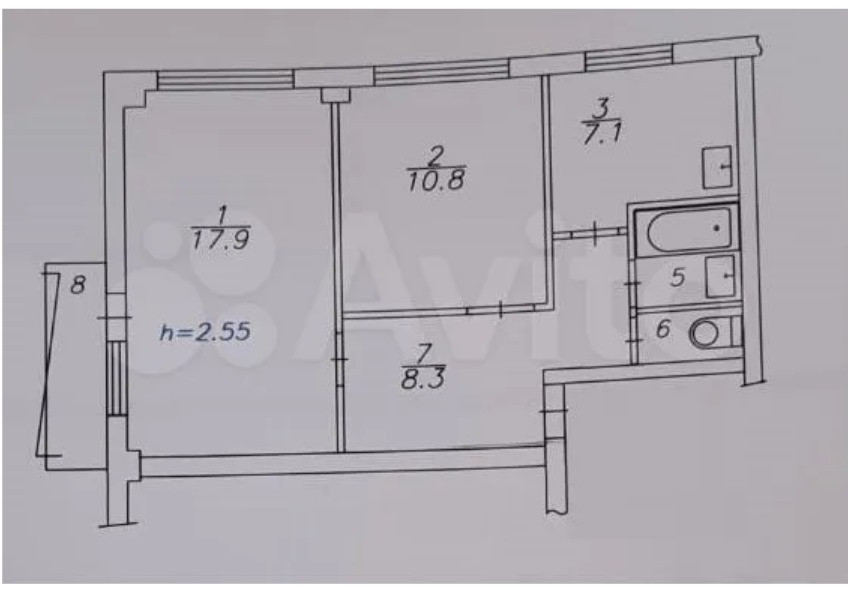Высота потолков 2.5 м