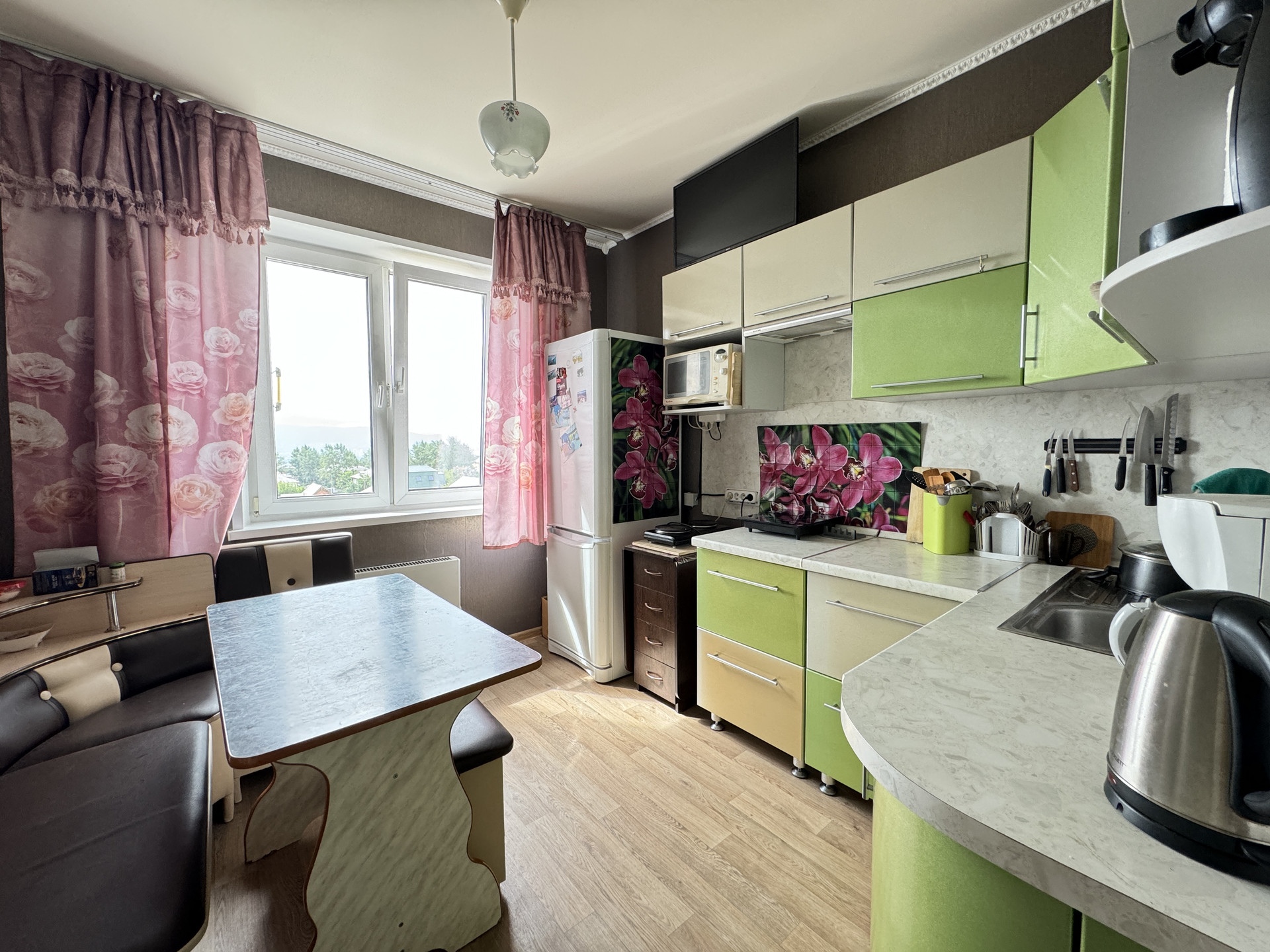 Просторная квартира с отдельной кухней 8,5 кв.м., большим коридором и кладовкой, застекленный балкон, раздельный санузел.