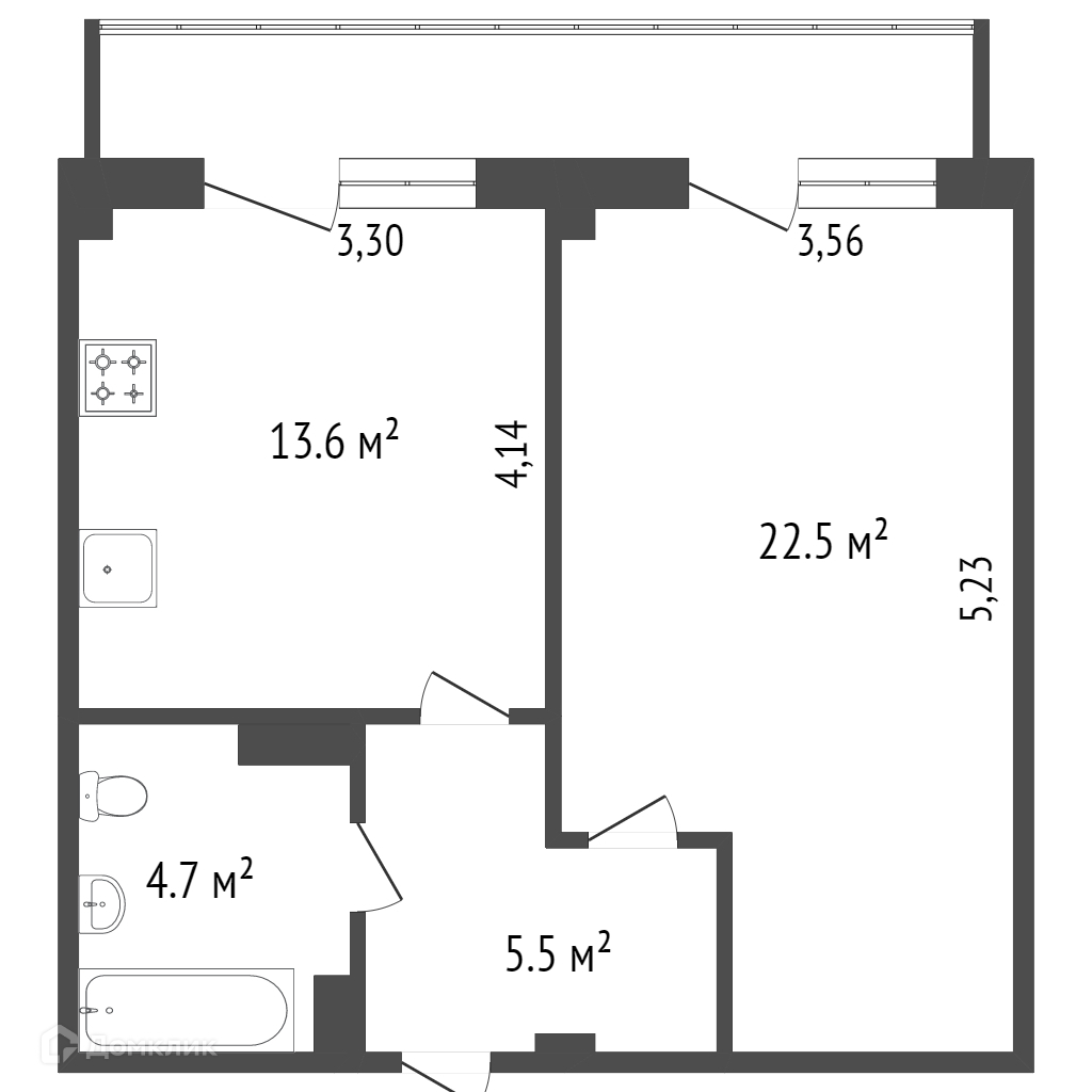 Общая площадь 33.8 м2