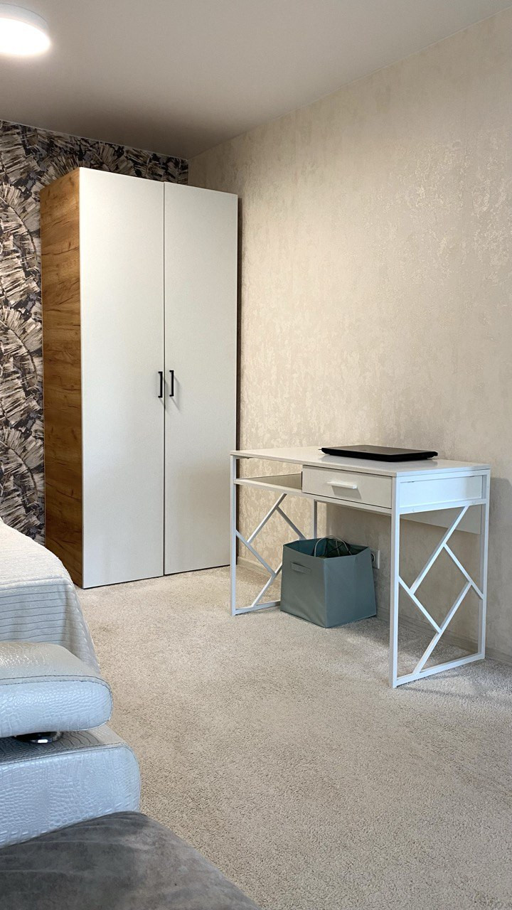 Квартира теплая! В комнате планировали сделать декоративную перегородку для зонирования пространства, там же сделали раздельное освещение, в прихожей встроенная гардеробная.