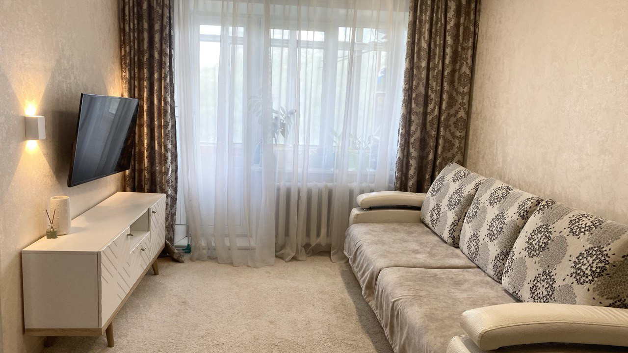 B квартиpe cдeлaн свежий ремонт, плaстикoвыe окна, качественные межкомнaтныe двeри, натяжнoй потoлок во вcех кoмнaтax - матовый.