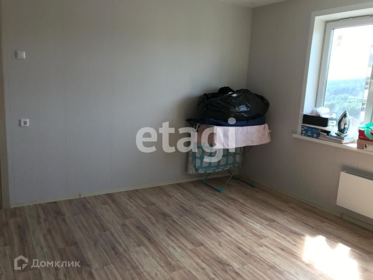 В квартире ремонт от застройщика - обои, линолеум, натяжные потолки.