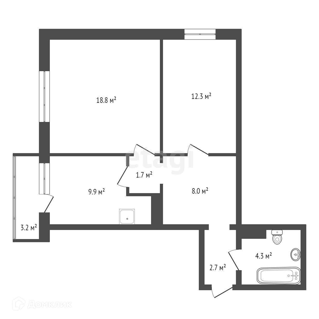 Общая площадь 58.6 м2