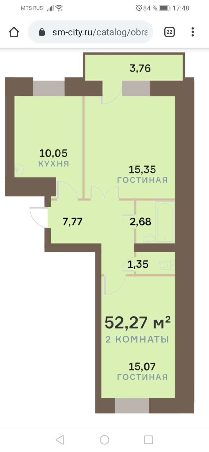 Общая площадь 52.27 м2