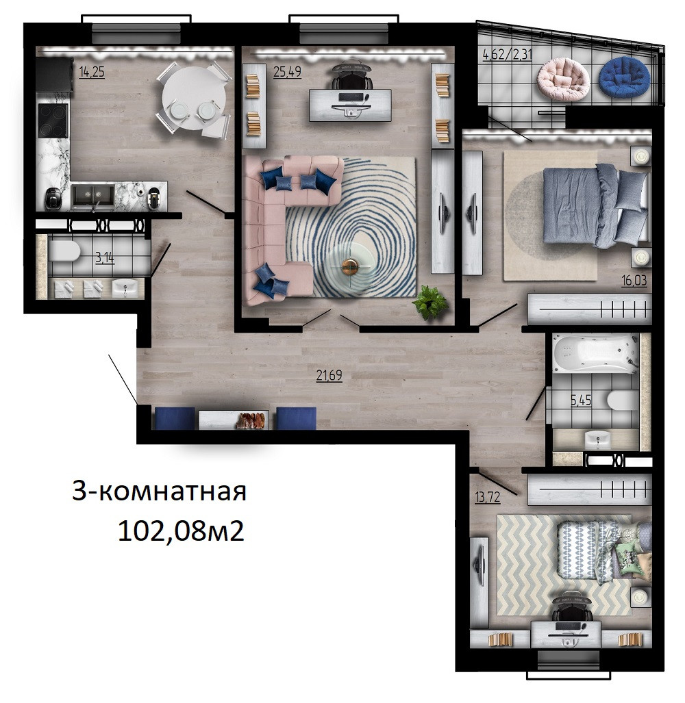 Общая площадь 102.08 м2