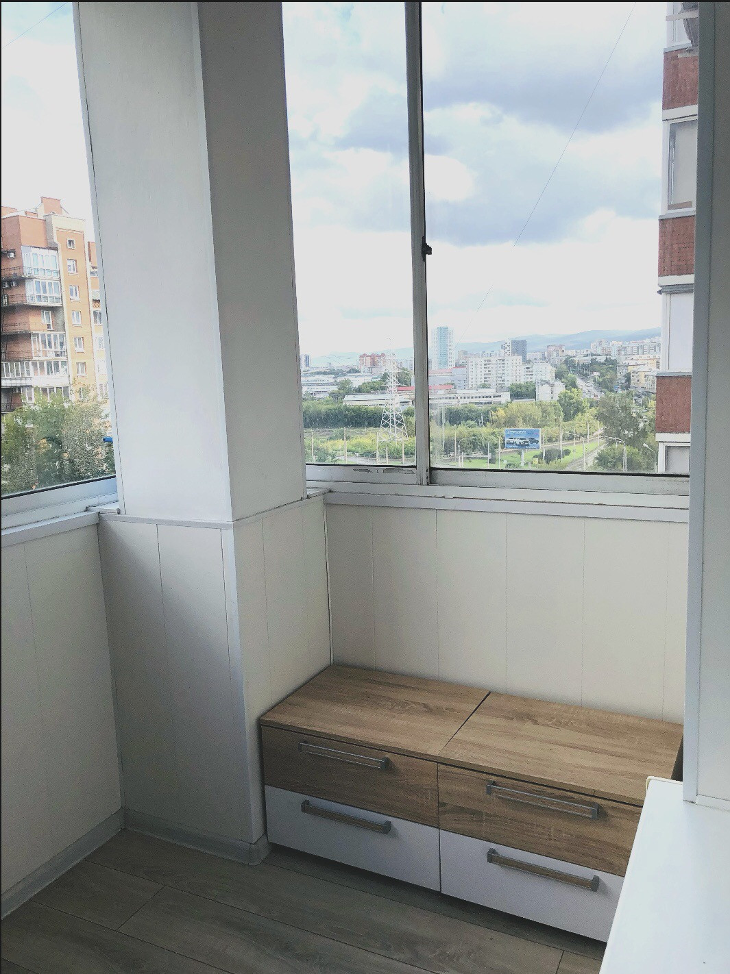 Имеется 2 большие лоджии,по желанию площадь квартиры можно увеличить,если их утеплить.