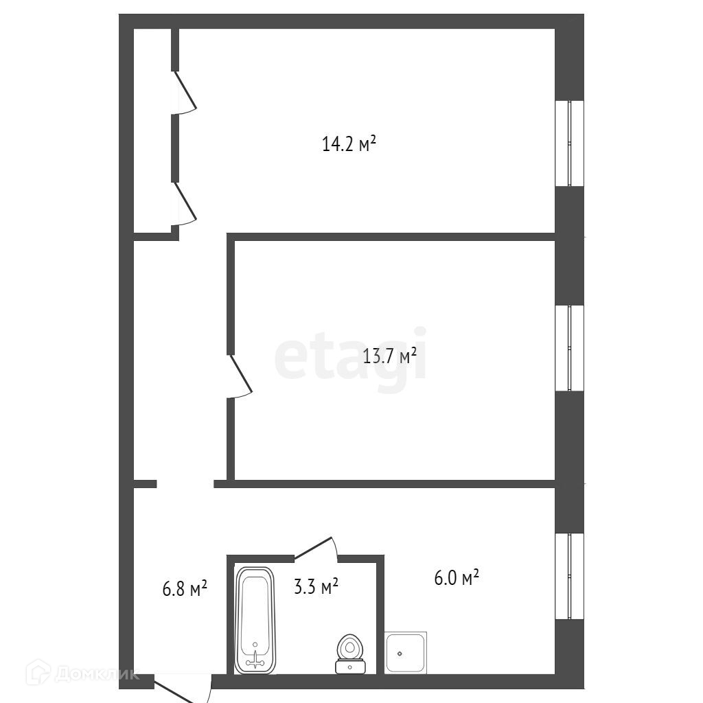 Общая площадь 51 м2