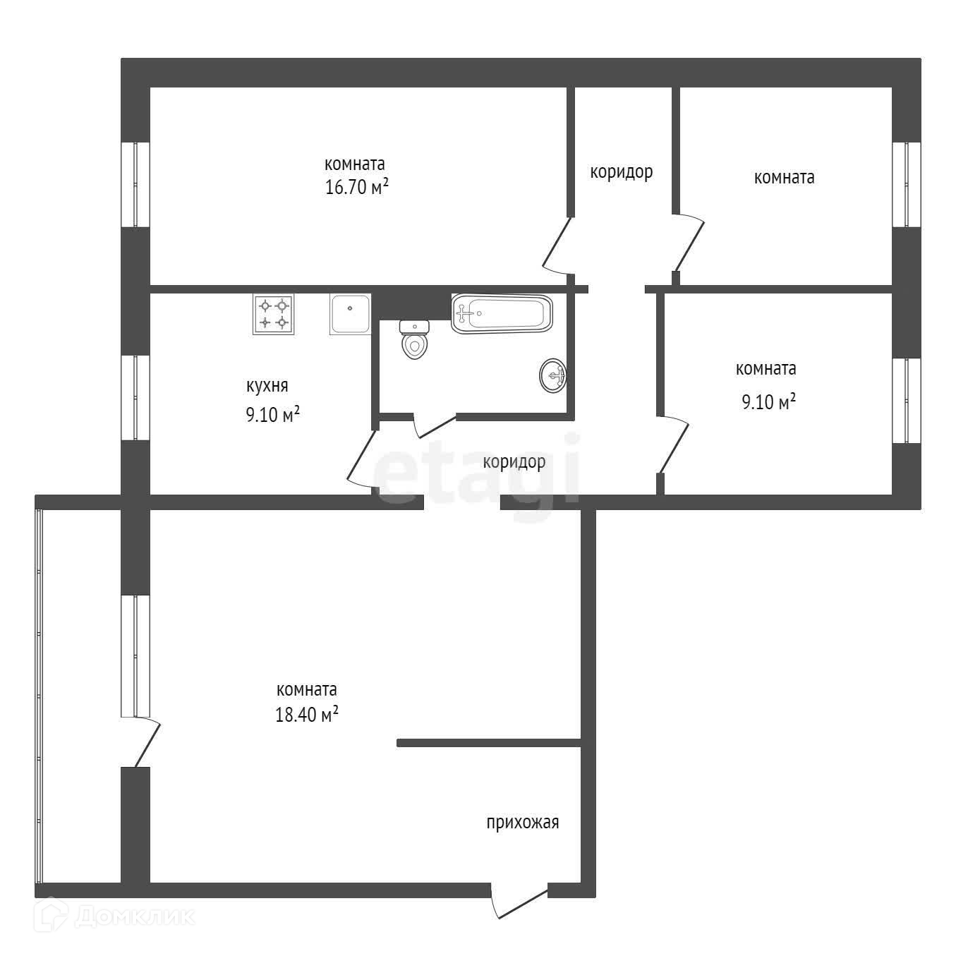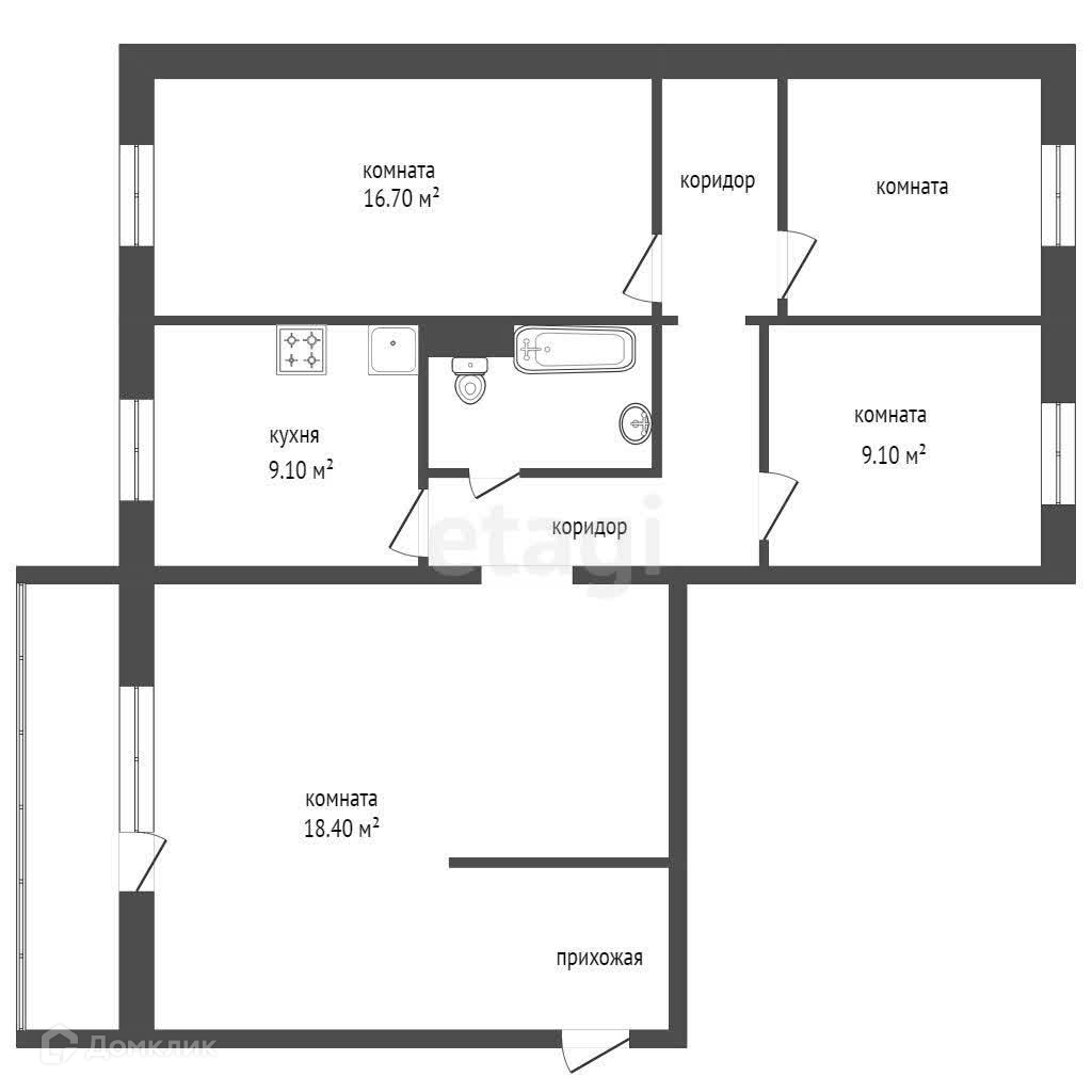 4-комнатная квартира, 83.2 м2, этаж 5 / 10, на продажу в Красноярске, улица Менжинского, 24