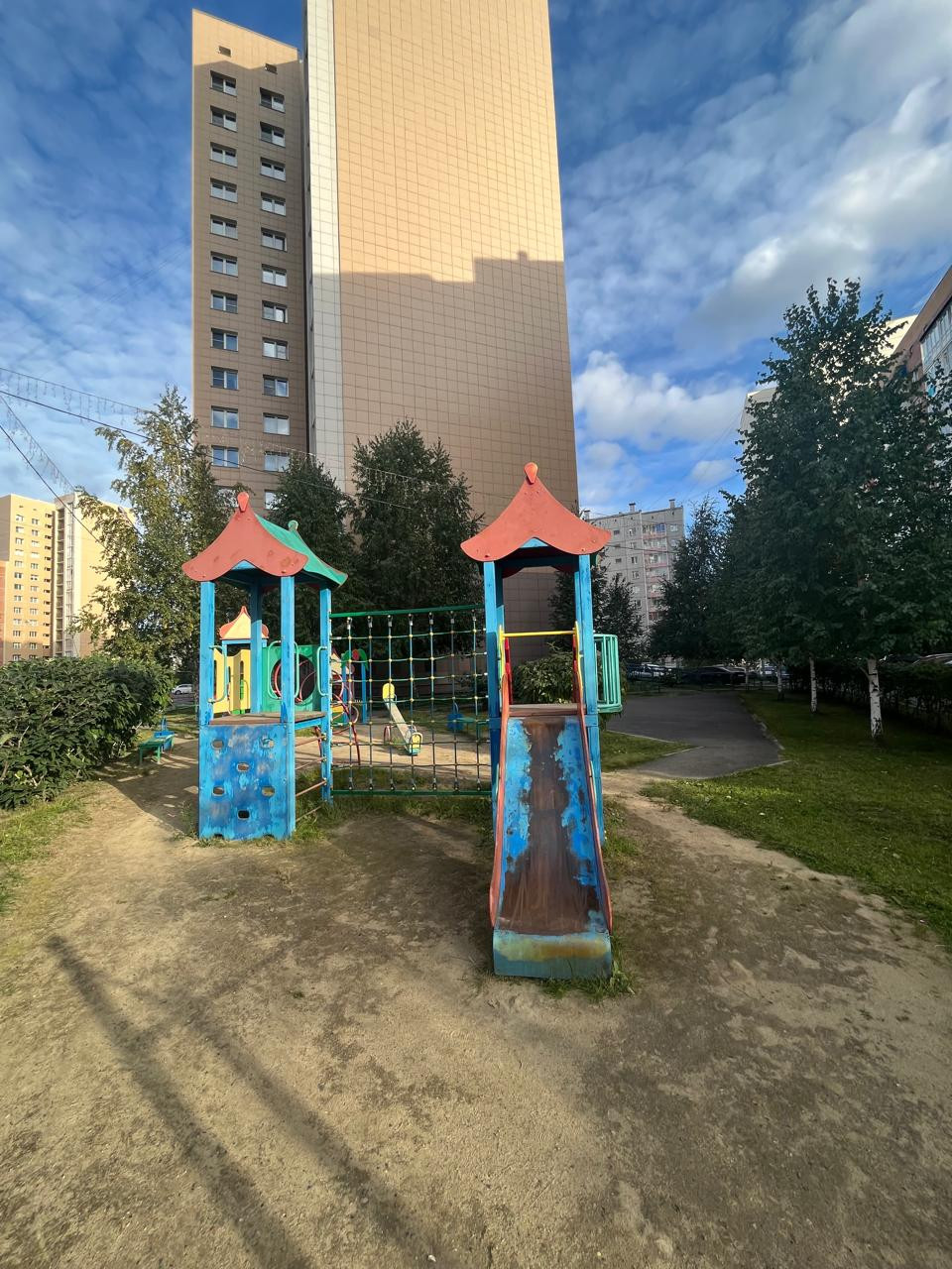 Закрытый двор за шлагбаумом,зеленый двор,две детские площадки, места для парковки личных автомобилей.