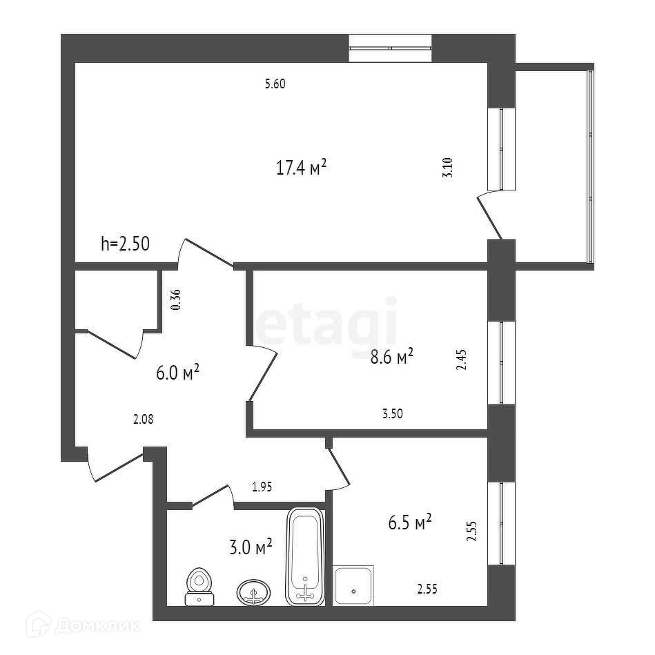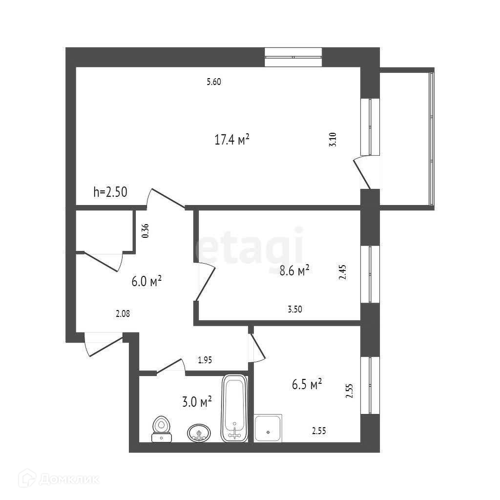 2-комнатная квартира, 42.3 м2, этаж 3 / 5, на продажу в Красноярске, улица 60 лет Октября, 79