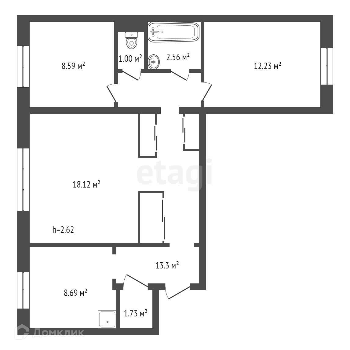 Общая площадь 68.4 м2