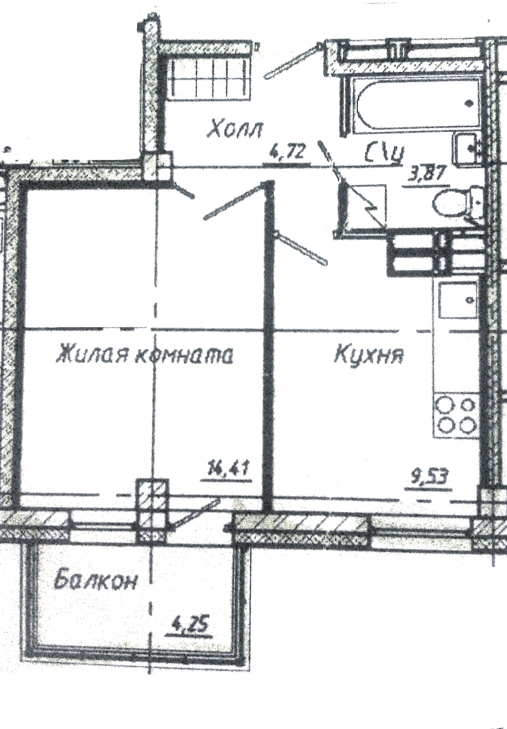 Балкон, лоджия 1 балкон