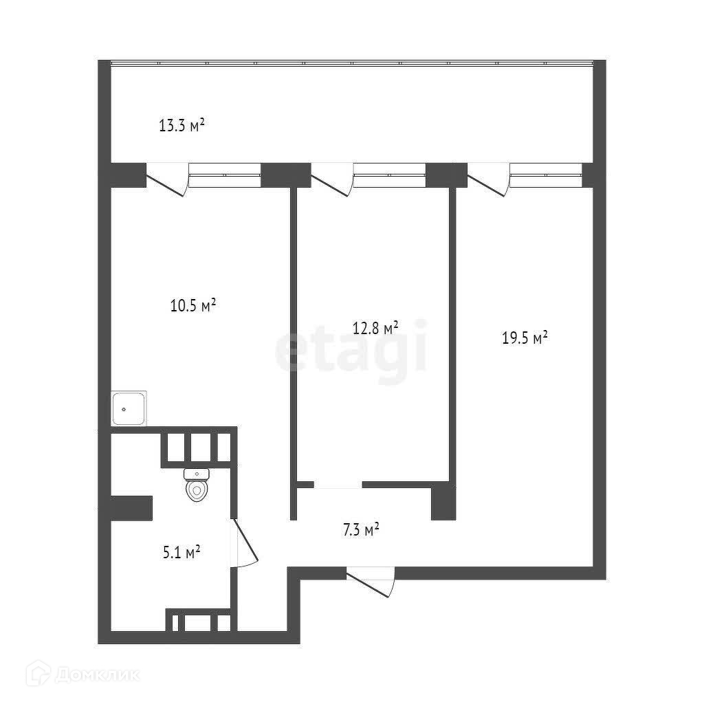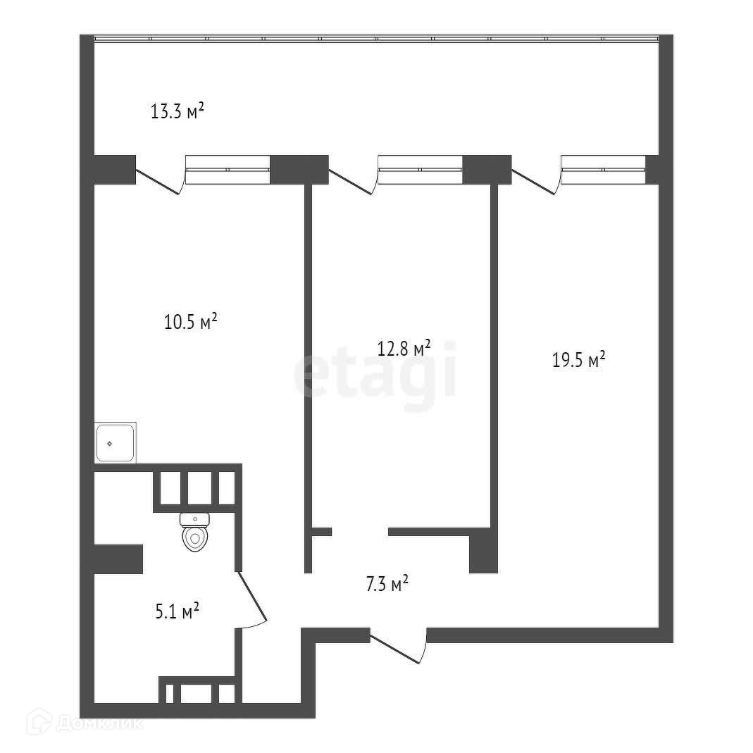 Общая площадь 55.1 м2