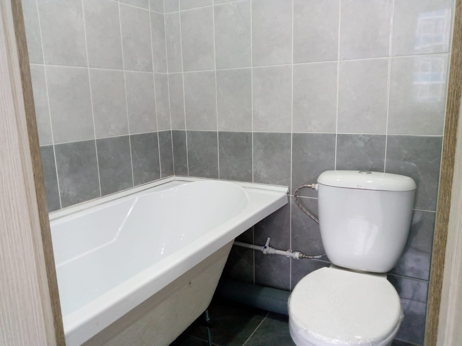 Санузел совмещенный в кафеле, вентиляция.Центральная канализация.