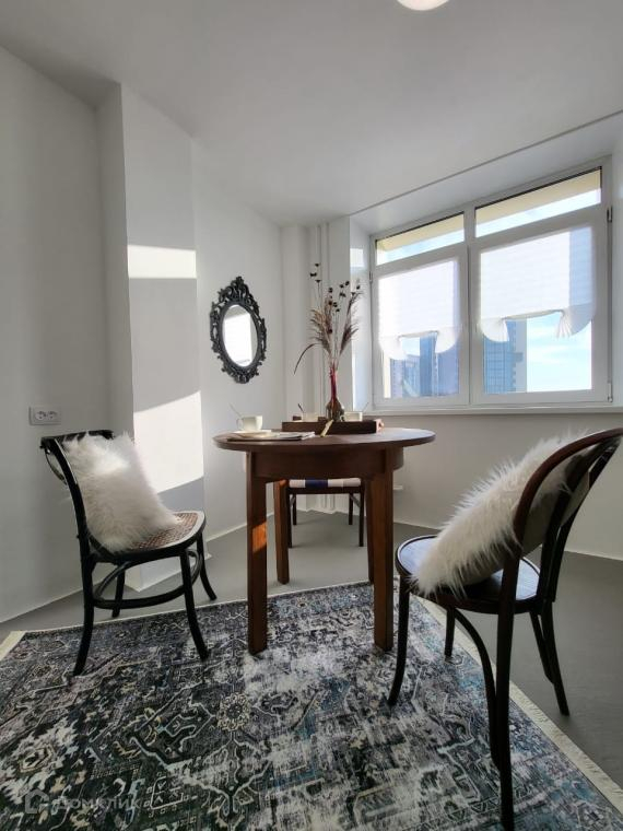 На кухне новый стильный кухонный гарнитур,варочная панель,стол,стулья!Мебель и технику можно купить, все это обсуждаемо!