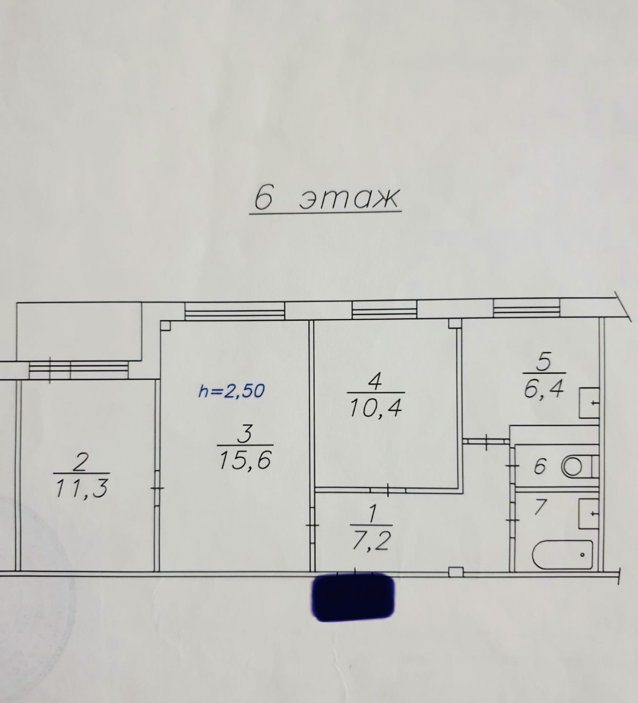 Высота потолков 2.5 м