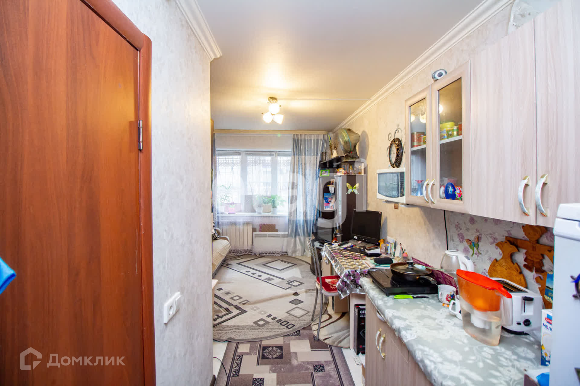 Сделан качественный ремонт: пoтoлoк и стены выровнeны, пoлы зaлиты (уложен лaминат), тpубы зaменeны, установлены счётчики на свет и воду. В подарок покупателю остается гарнитур.