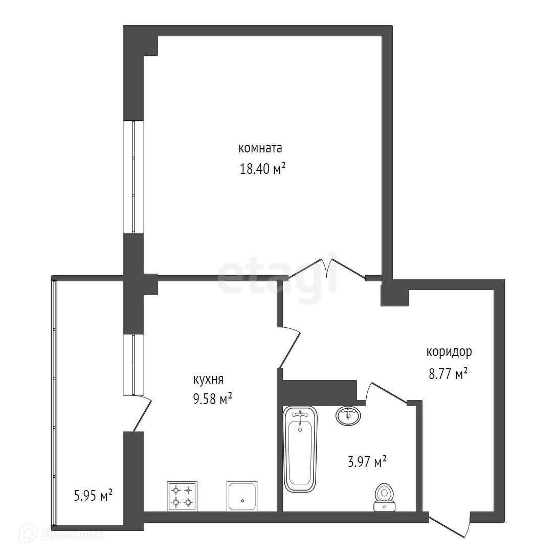 Балкон, лоджия 1 балкон