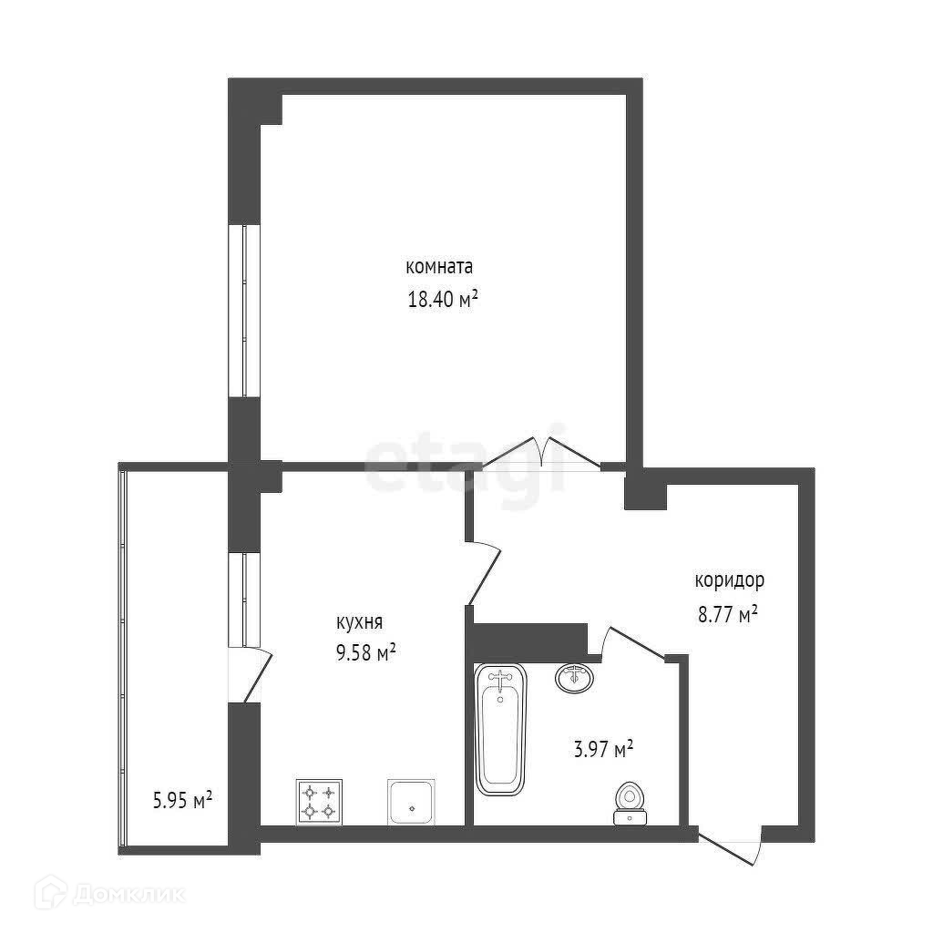 1-комнатная квартира, 41.1 м2, этаж 15 / 20, на продажу в Красноярске, улица Калинина, 47Л