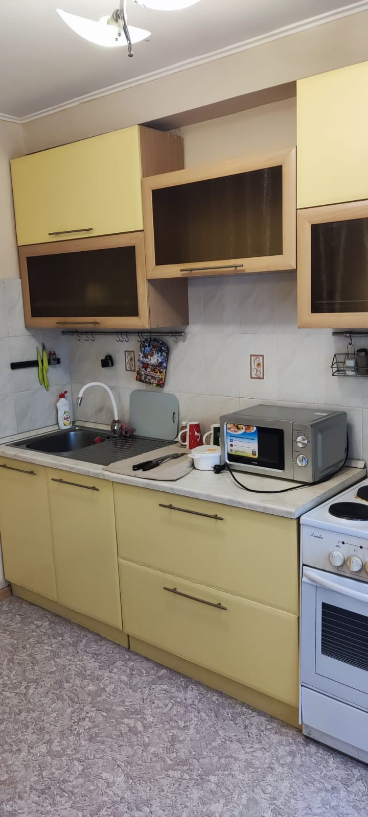 Эта светлая квартира находится на втором этаже девятиэтажного панельного дома, построенного в 1976 году.