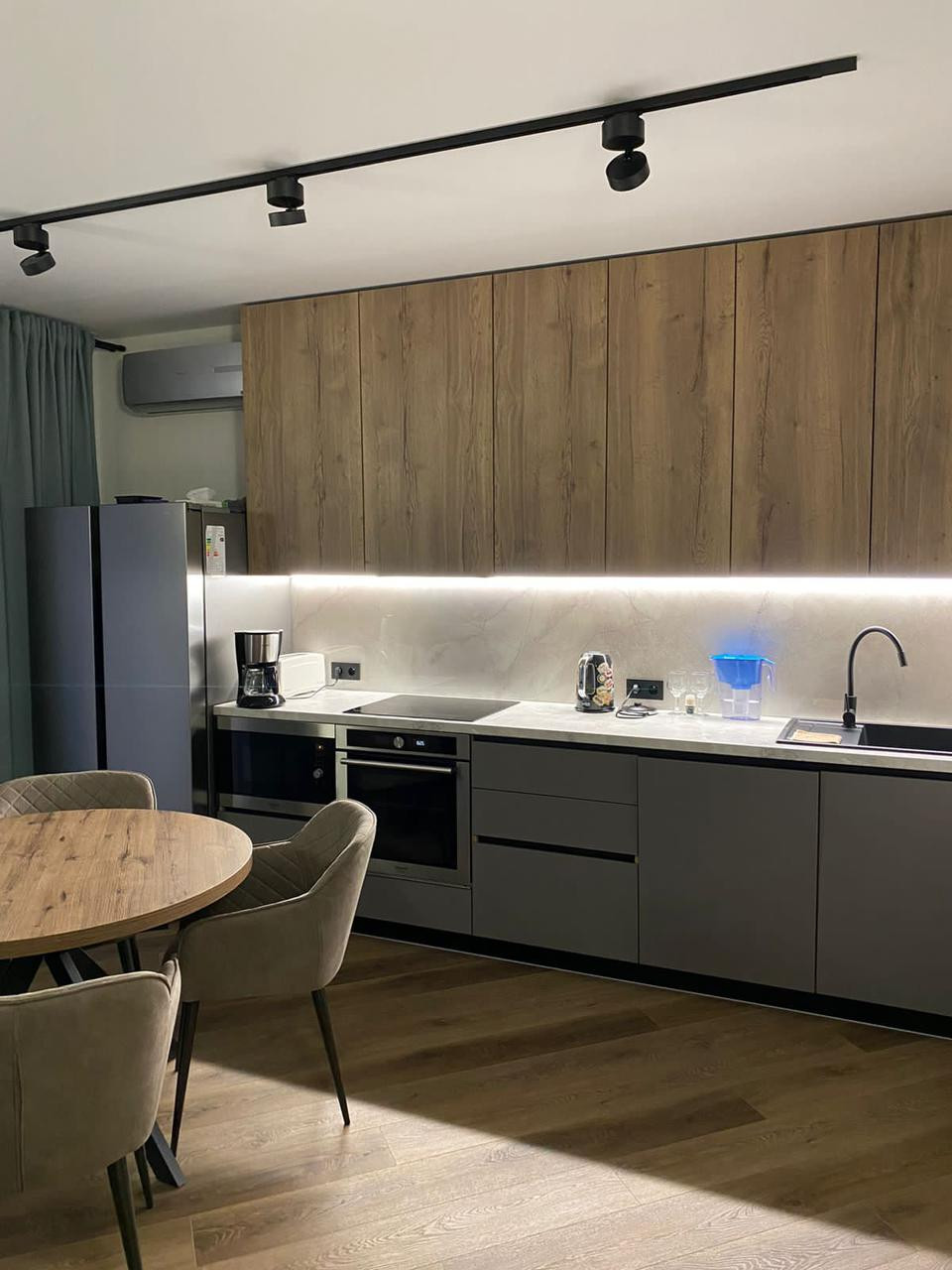 В квартире выполнен дизайнерский ремонт с использованием качественных и дорогостоящих материалов, функциональная планировка в которой всё продумано до мелочей.В зале витражные окна с потрясающим видом, которые привносят больше света и визуально увеличивают пространство.Есть гардеробная, 2 санузла. Квартира продается с мебелью.Хорошо развита инфраструктура, сад, школа, магазины, кафе, остановки общественного транспорта и т.д. всё рядом.Закрытый двор, детские площадки прекрасно обустроены, что позволит Вашим детям безопасно гулять во дворе.