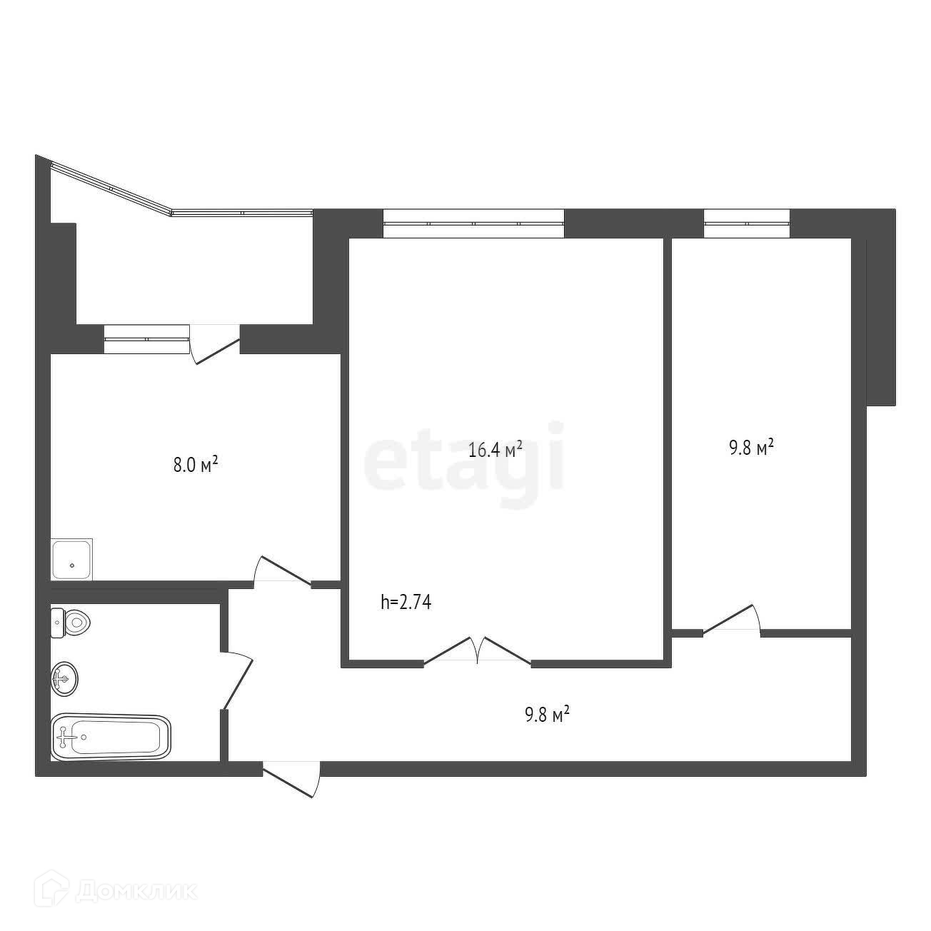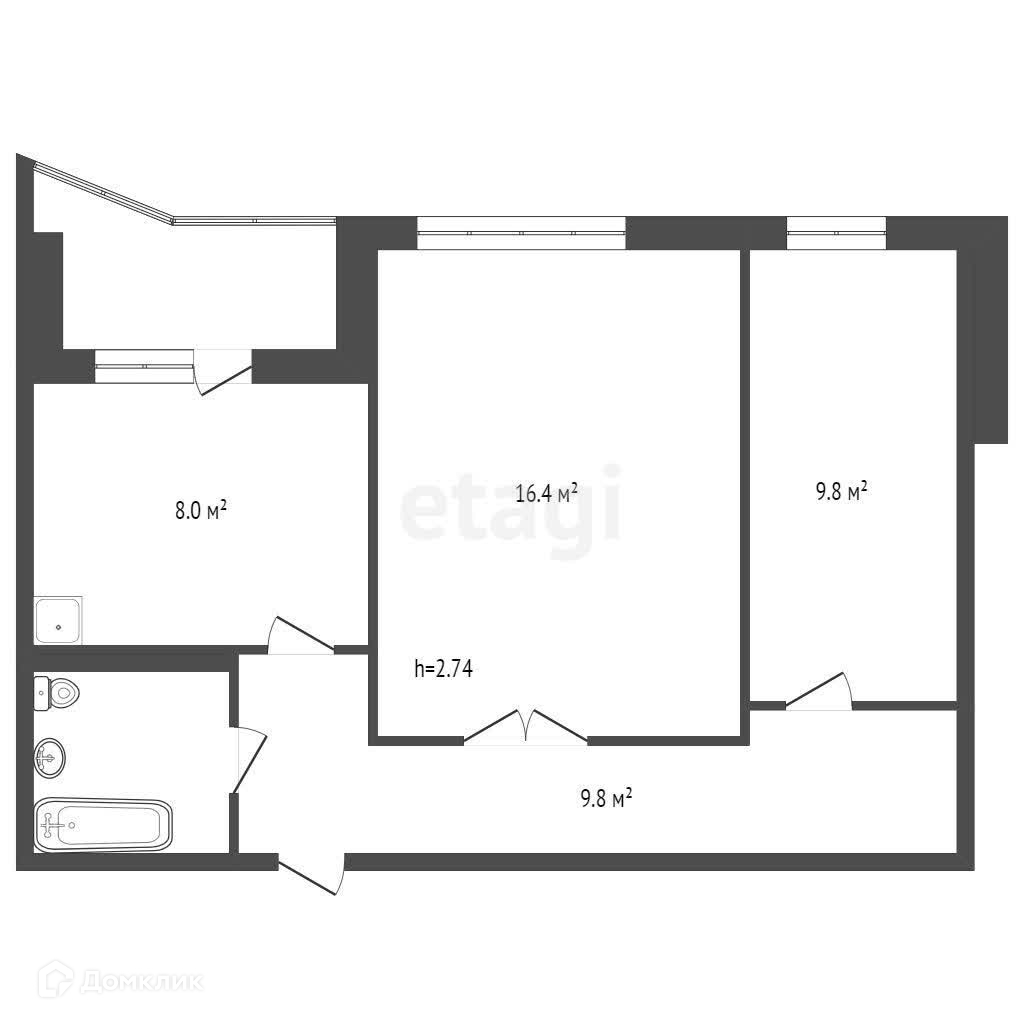 Предлагается к продаже 2-х квapтира (47,2 м2) в монолитно-кирпичном доме в центре Взлетки.