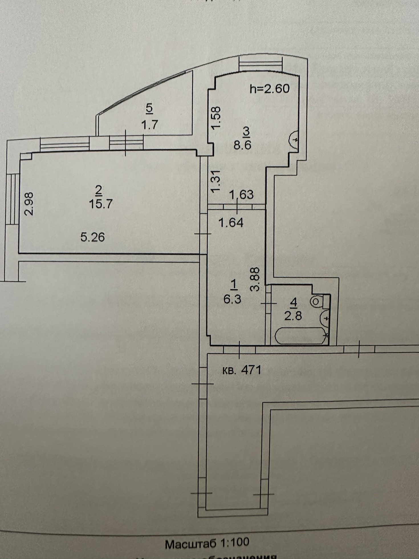 Балкон, лоджия 1 балкон