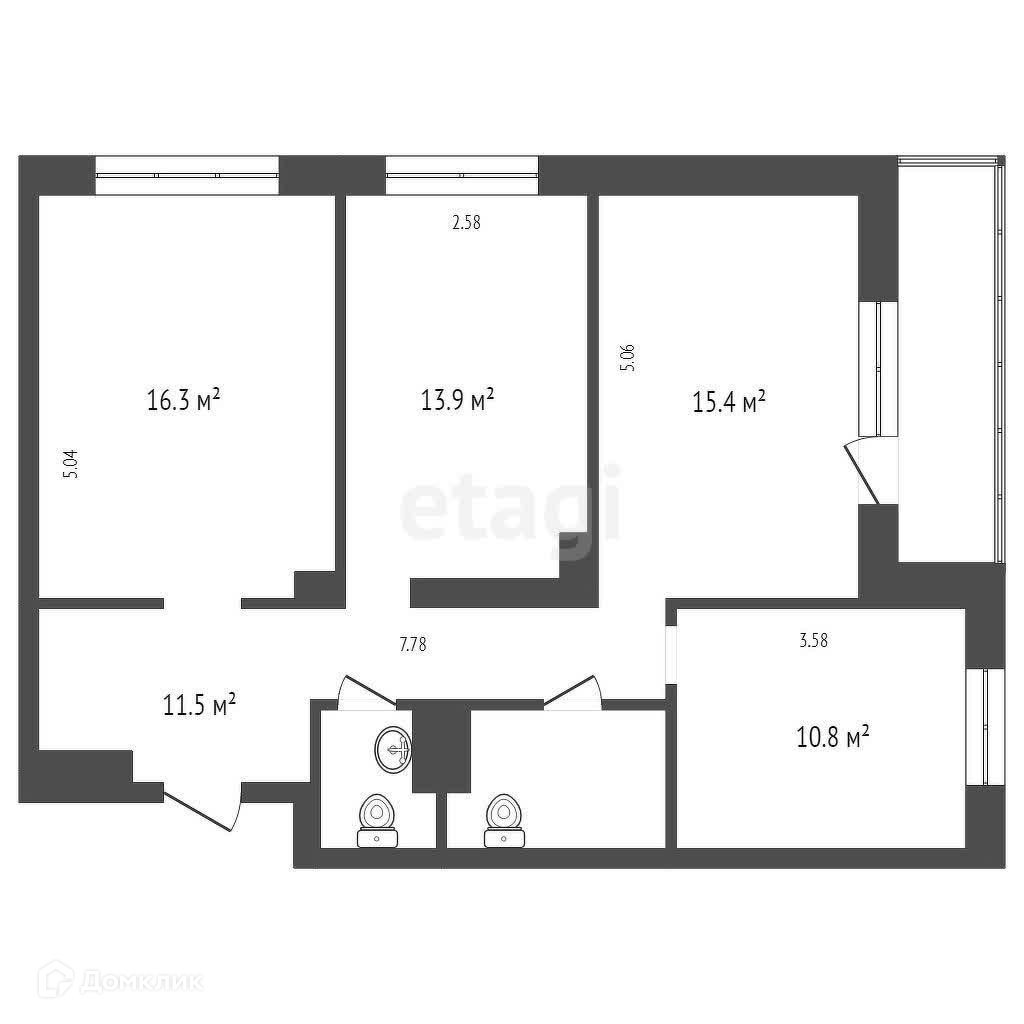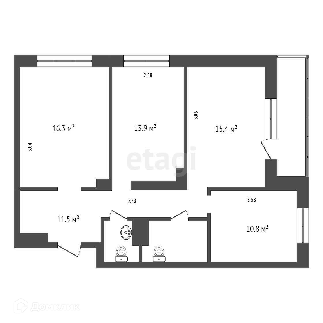 Общая площадь 77.4 м2