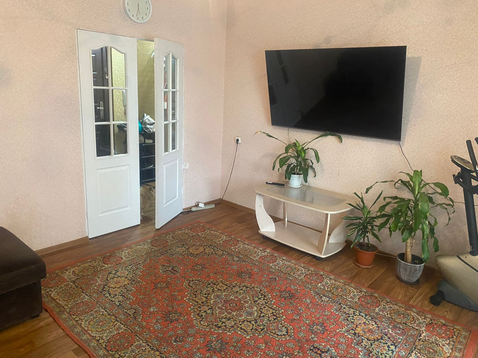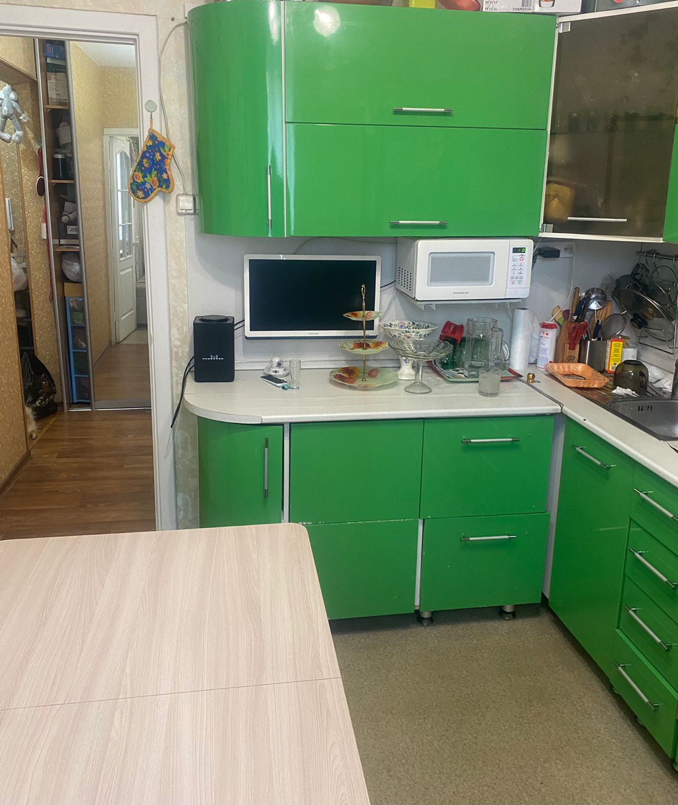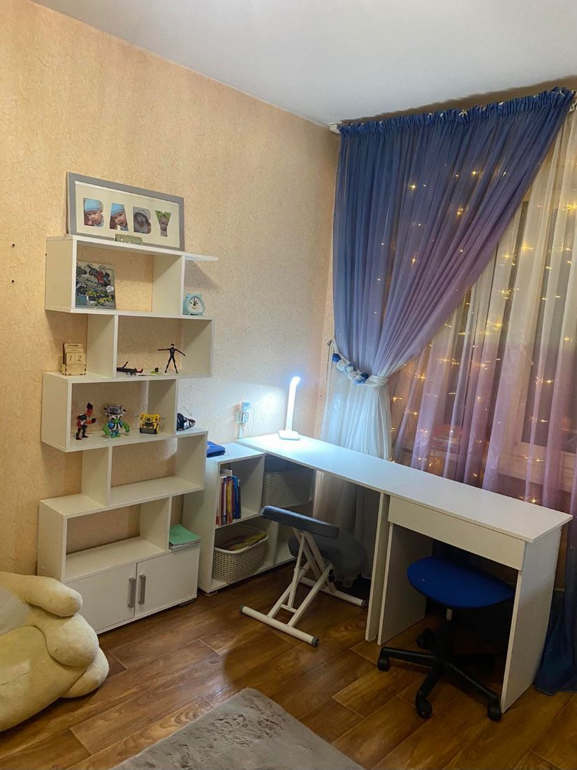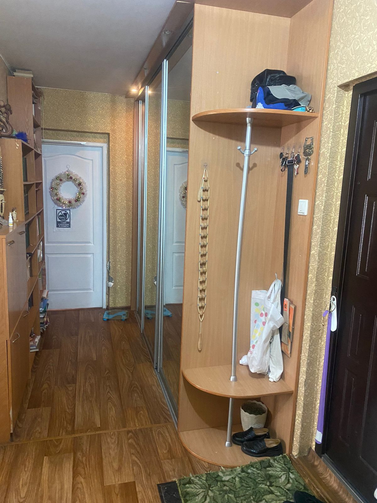 Квартира светлая, соседи хорошие, сторона солнечная. В собственности 17 лет. Имеются встроенные шкафы в прихожей: Один для одежды, второй для хранения вещей (с полками), ванная комната и туалет в кафеле.  Остаётся кухонный гарнитур.