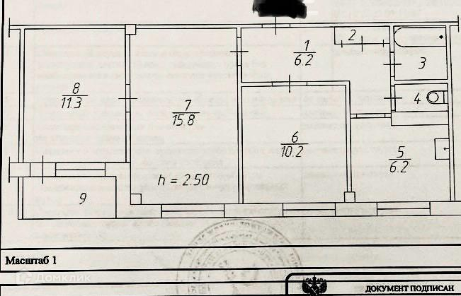 Общая площадь 53.8 м2