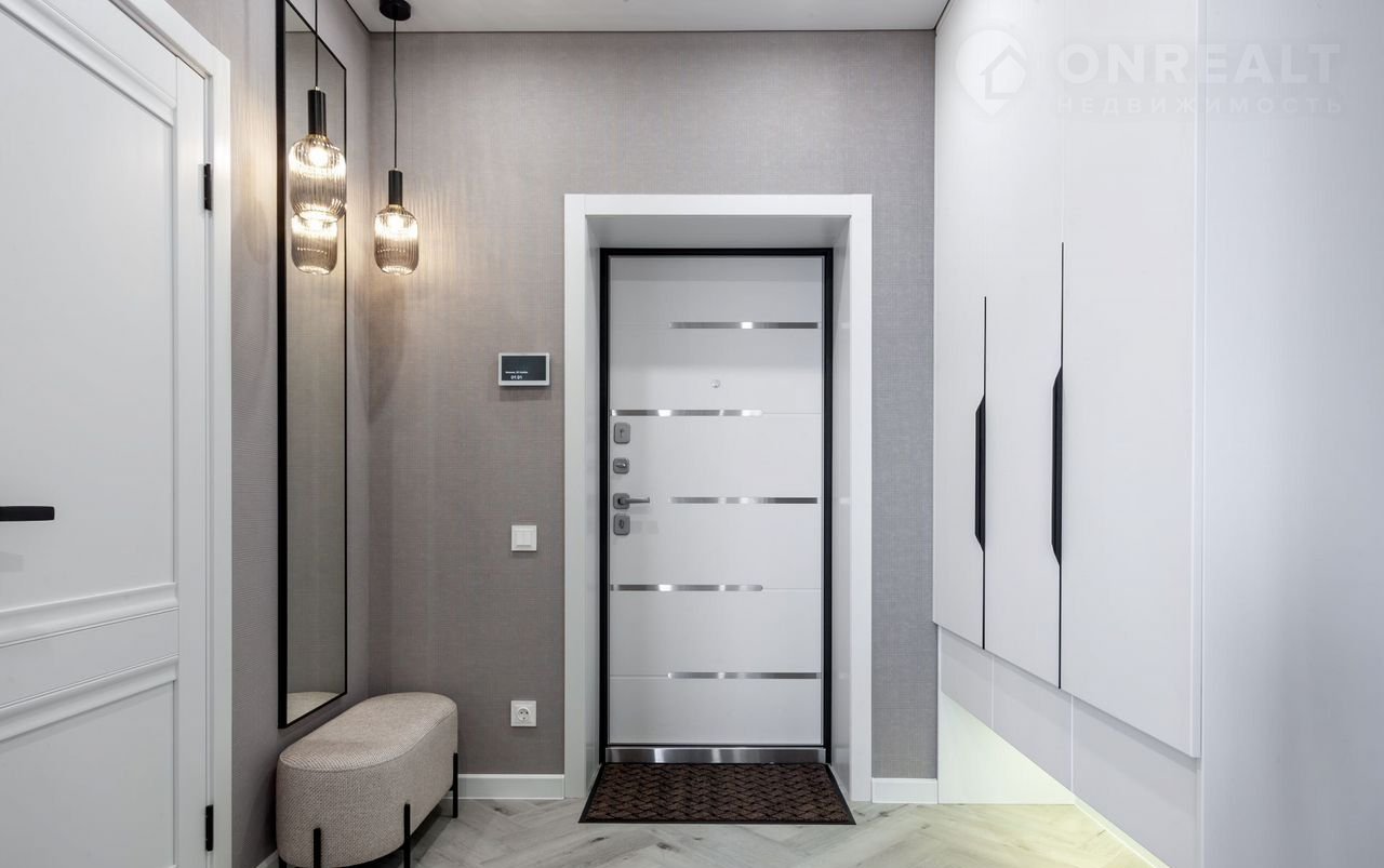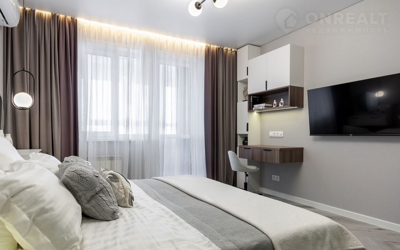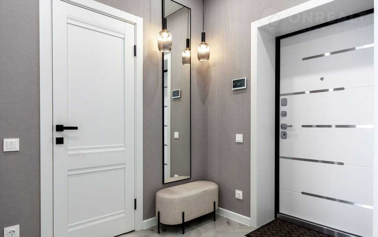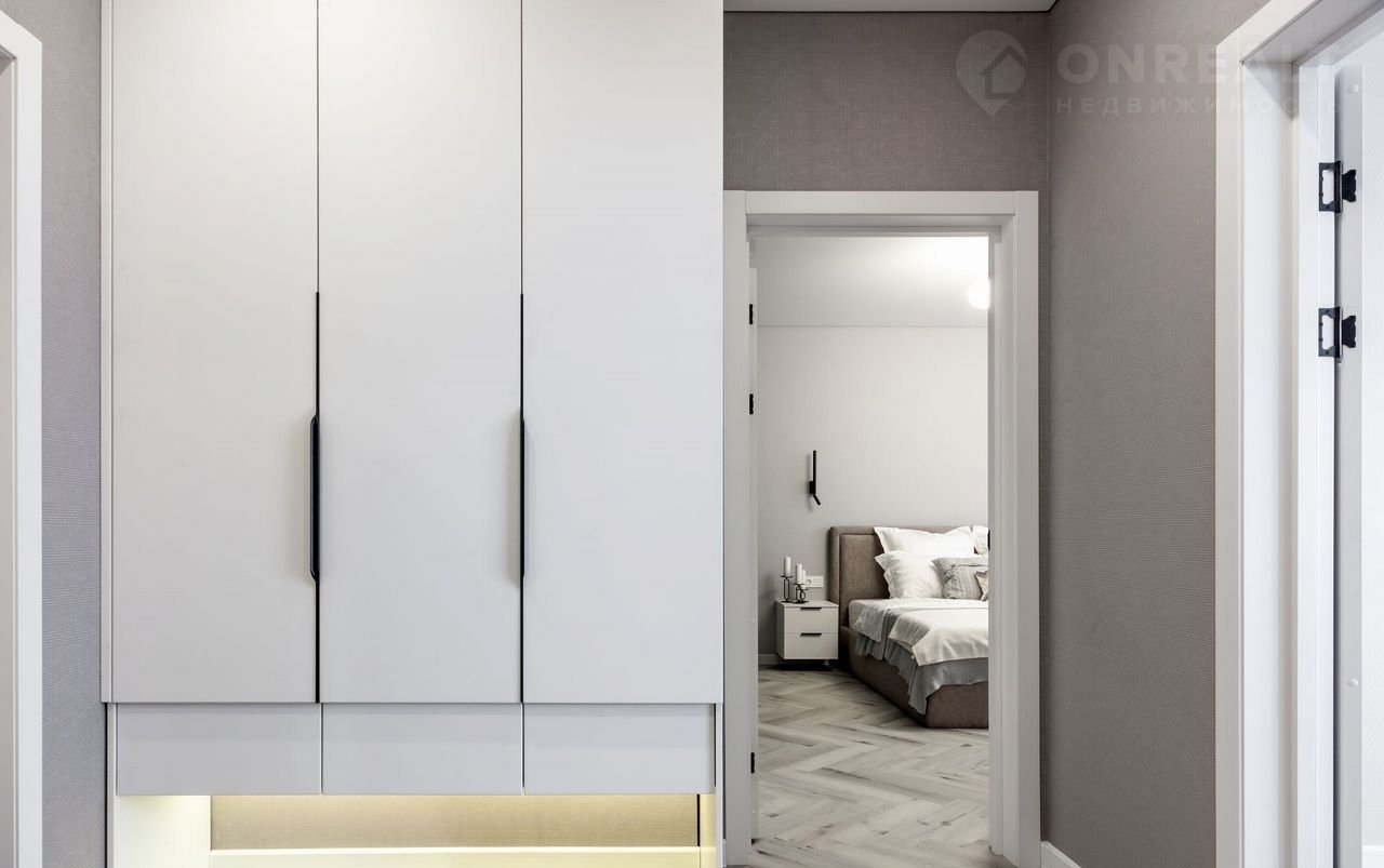 —Во всей квартире натяжные потолки класса "премиум" со встроенными светодиодными светильниками, настенными светильниками, магнитными трекинговыми системами, диодными подсветками на карнизах, что создает безусловно уютную атмосферу в квартире