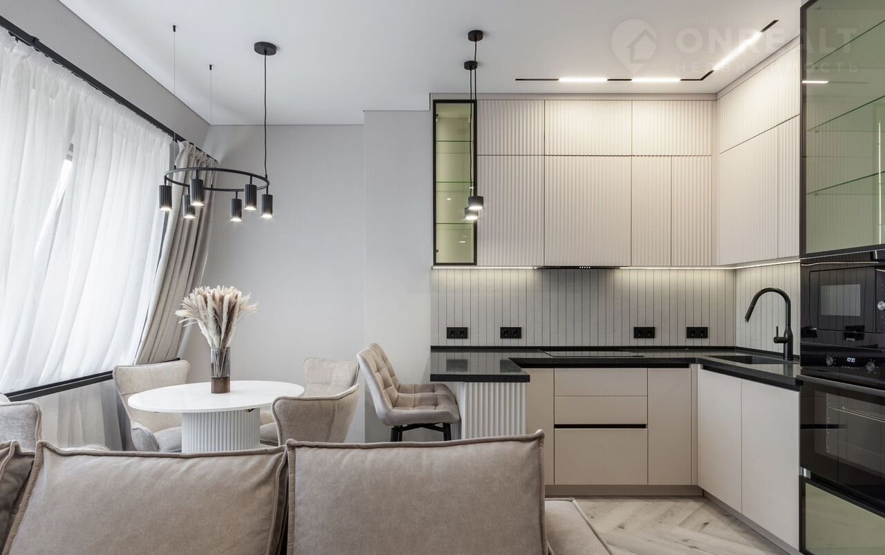 —Зонированное освещение комнаты и кухонной зоны, множество сценариев освещения во всех помещениях