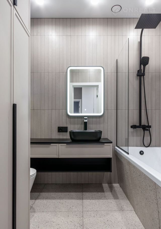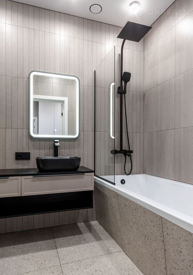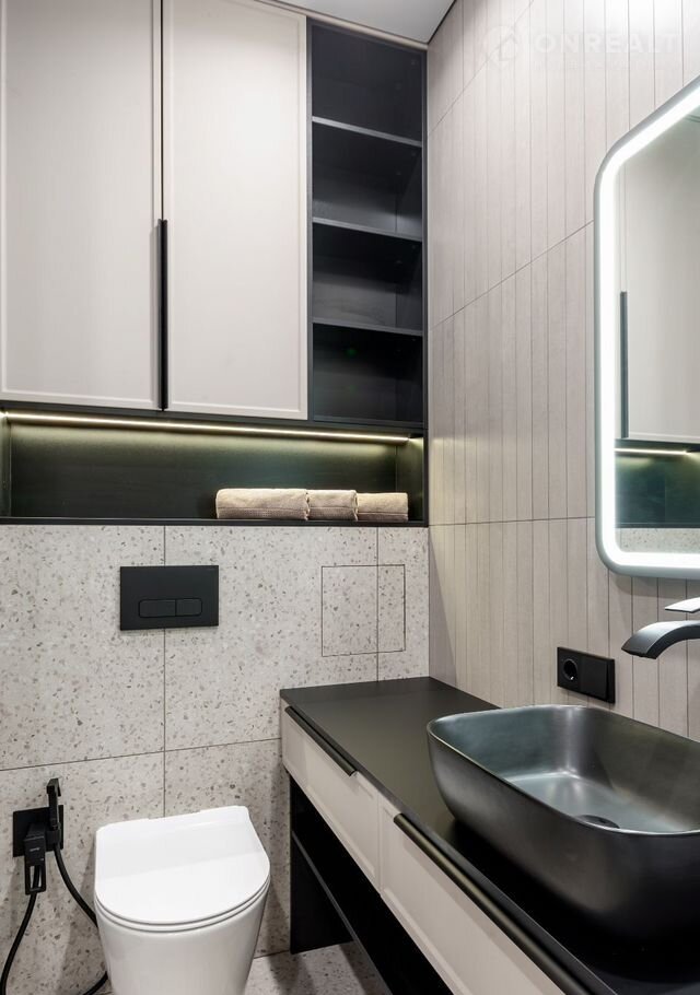—В санузле установлена сантехника Gарро, соответствующая европейским стандартам, - душевая система с термостатом и тропическим душем, каскадный смеситель, гигиенический душ, инсталляция. Стены и пол облицованы керамогранитом. Санузел также оборудован встроенной мебелью, стиральной и сушильной машинами Gоrеnjе, программируемыми тёплыми полами, люком скрытого монтажа