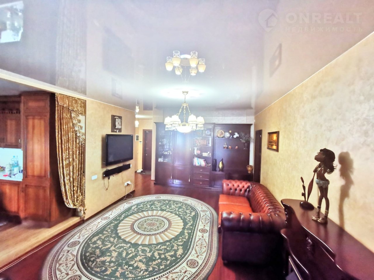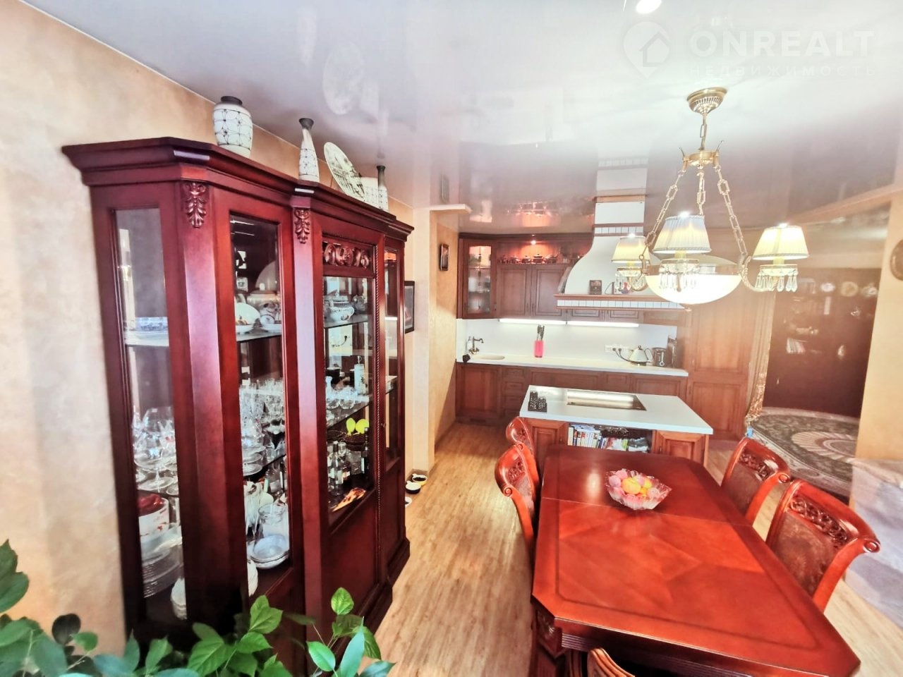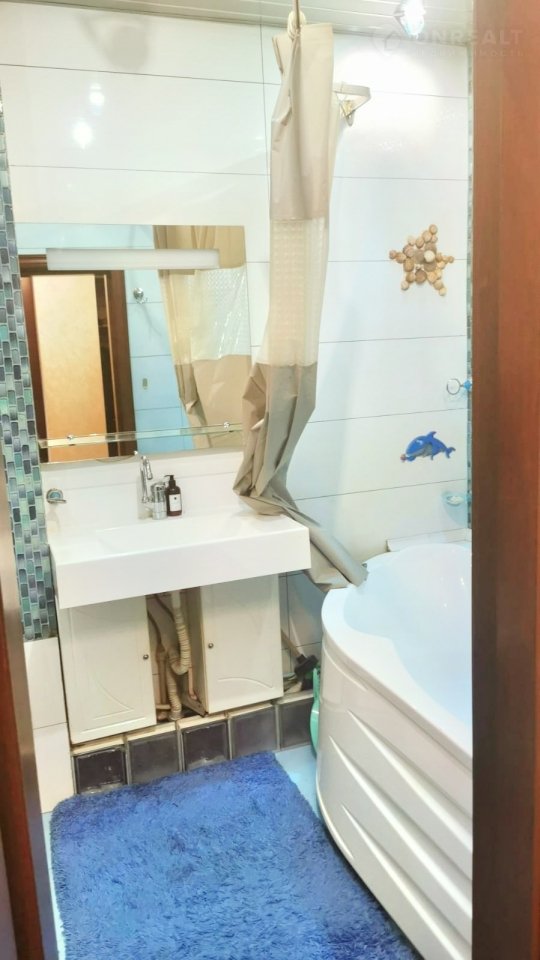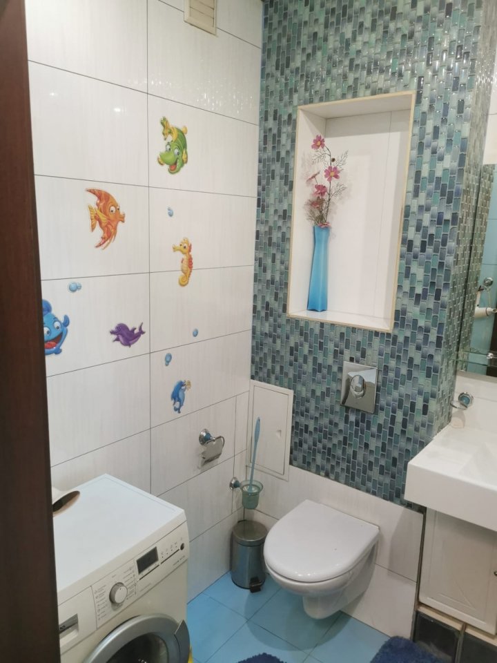 Выполнен качественный ремонт, итальянские двери из массива, все стены утеплены по периметру и сделана дополнительная шумоизоляция, все окна заменены. В квартире натяжные потолки, пол (в спальне, зале и гардеробной) ламинат, кварцвиниловая ПВХ плитка на кухне, стены в спальне и гостинной-кухне выполнены итальянской декоративной штукатуркой (в технике с эффектом мокрого шелка). Продается квартира с итальянским кухонным гарнитуром (включая «остров» с расположенным в нем бытовой техникой, вытяжкой) и встроенными гардеробными шкафами.