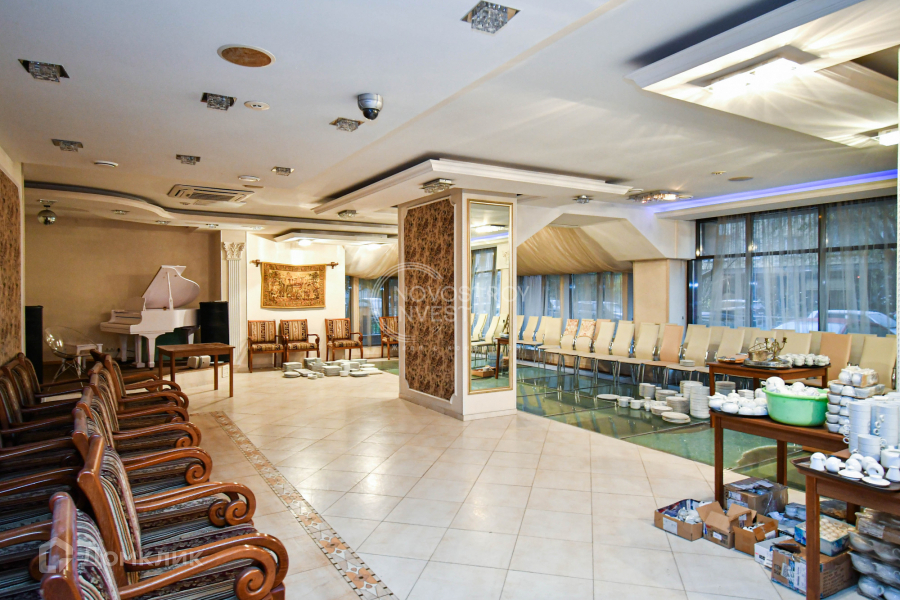 Придомовая территория: участок по всему периметру окружен кирпичной стеной с коваными воротами. Перед зданием имеется парковка. Имеются два въезда на территорию: западные и восточные ворота. Ворота на электроприводах. Открываются и с пульта, и с комнаты охраны. На участке расположен отапливаемый бокс на три автомобиля представительского класса с мойкой и подсобными помещениями.Территория участка благоустроена, имеются насаждения. Имеются две беседки: одна открытая, другая закрытая. Вся территория освещается в ночное время суток. Ведется видеонаблюдение.