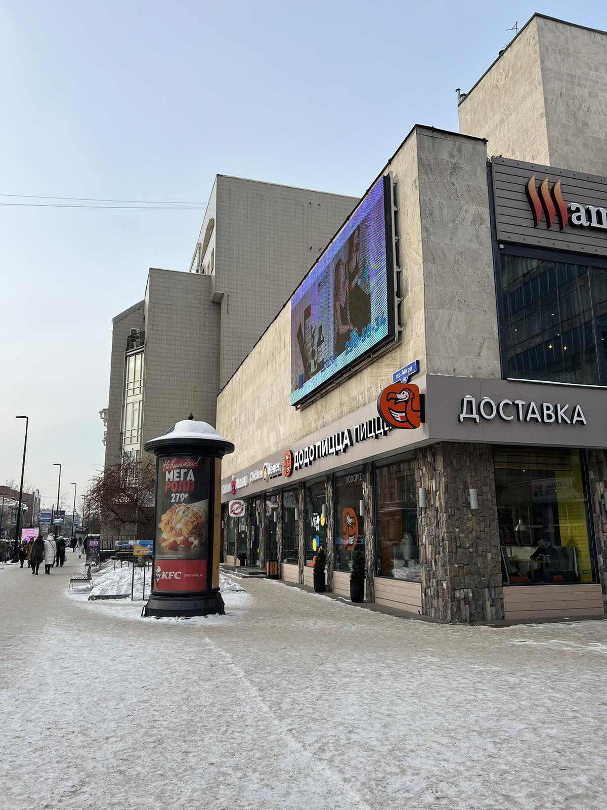 Помещение находится на первой линии с большим пешеходным и автомобильным трафиком. Рядом остановки общественного транспорта