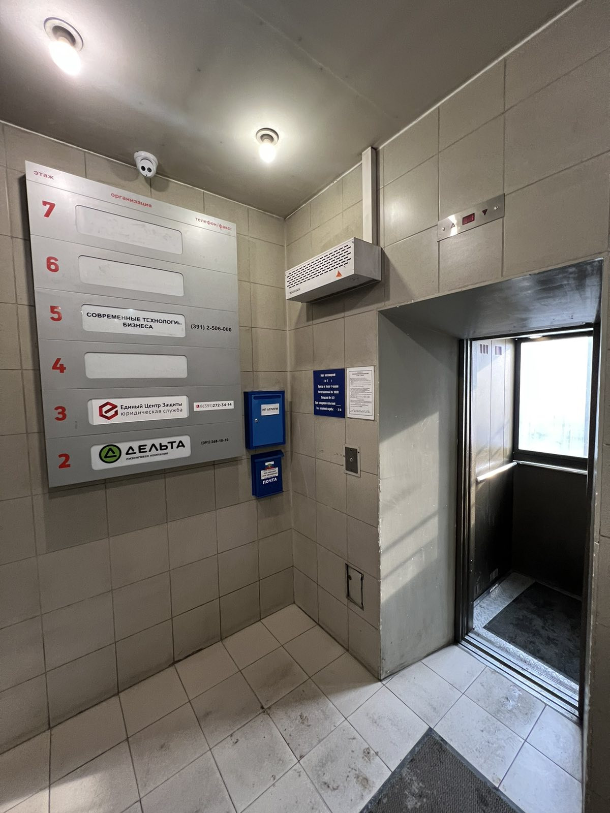 Офисное помещение расположено на 6 этаже здания. Лифт до 4-го этажа. Пять отдельных кабинетов на 2 стороны ( из них 4 рабочих кабинета + кухня), 2 сан узла, серверная, свой отдельный выход по лестнице на 7 этаж, и только у нас имеется открытая терраса с видом на ул. Мира.