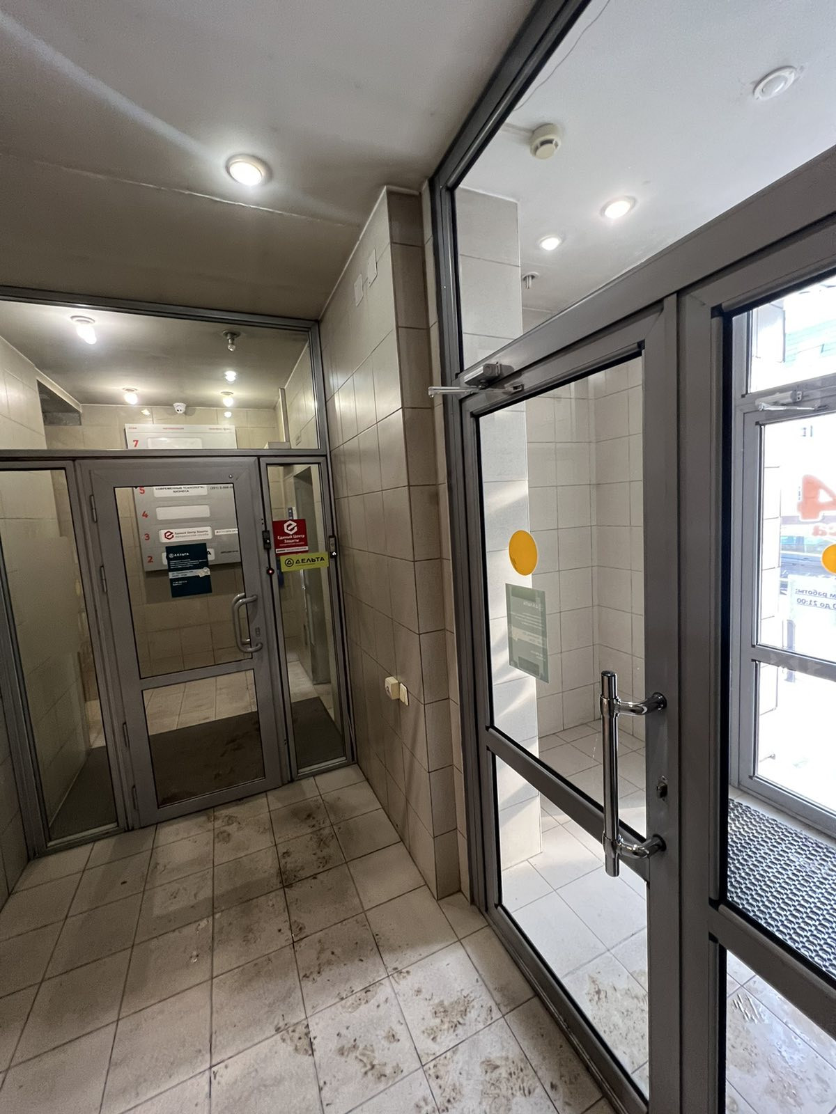 Вход в здание под охраной.