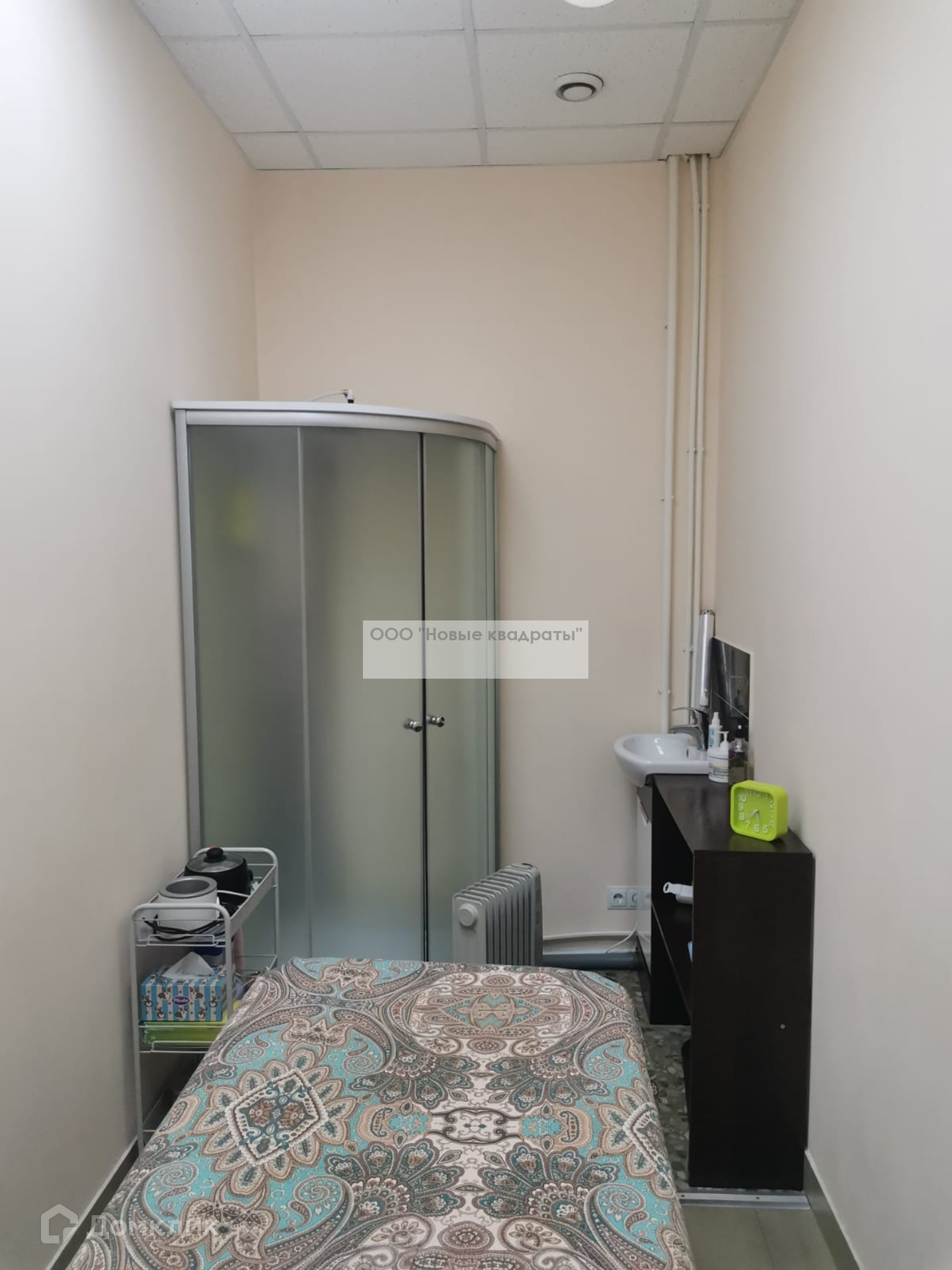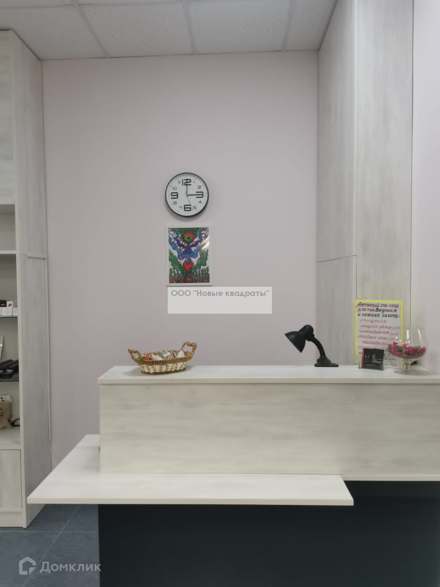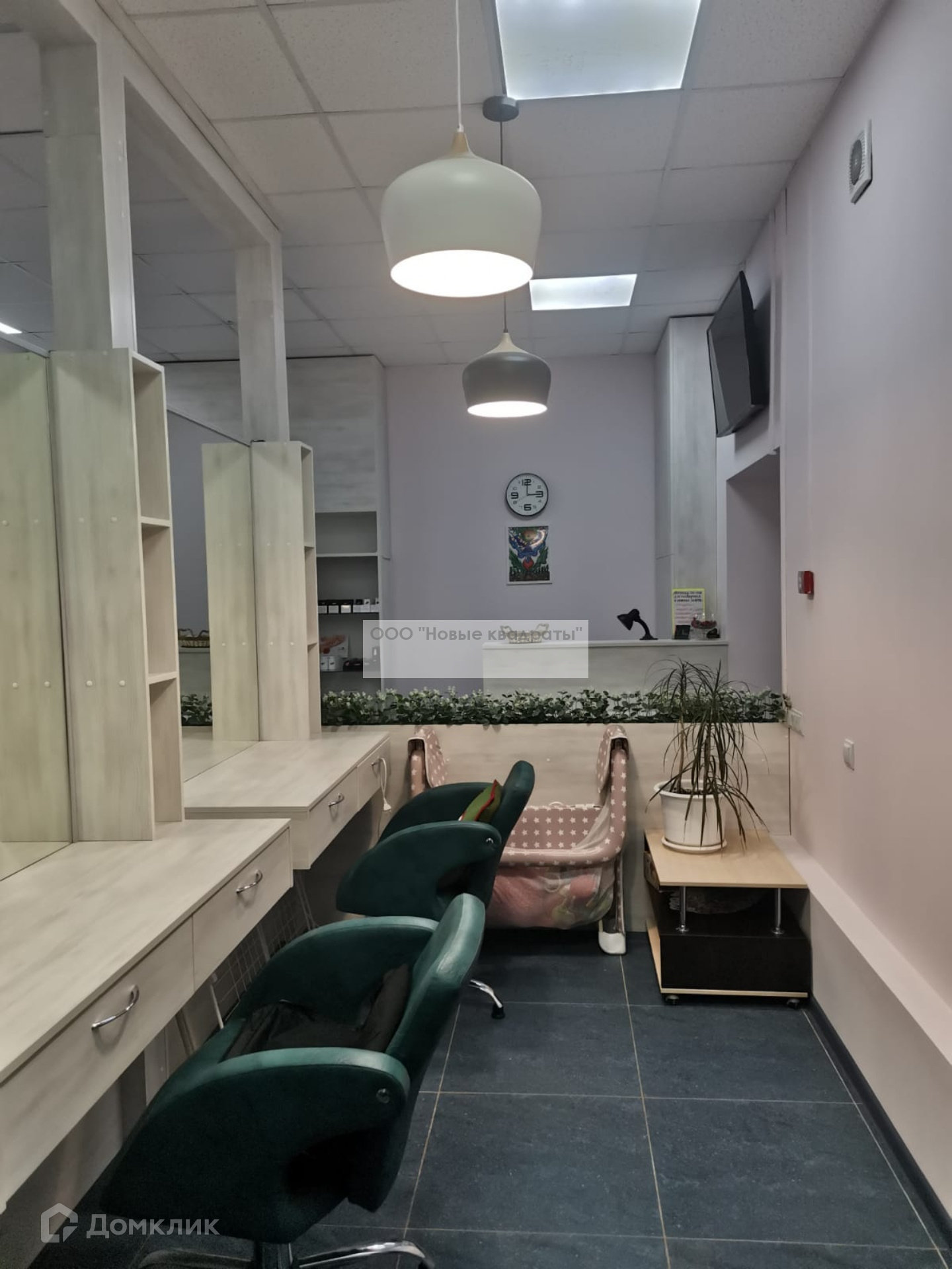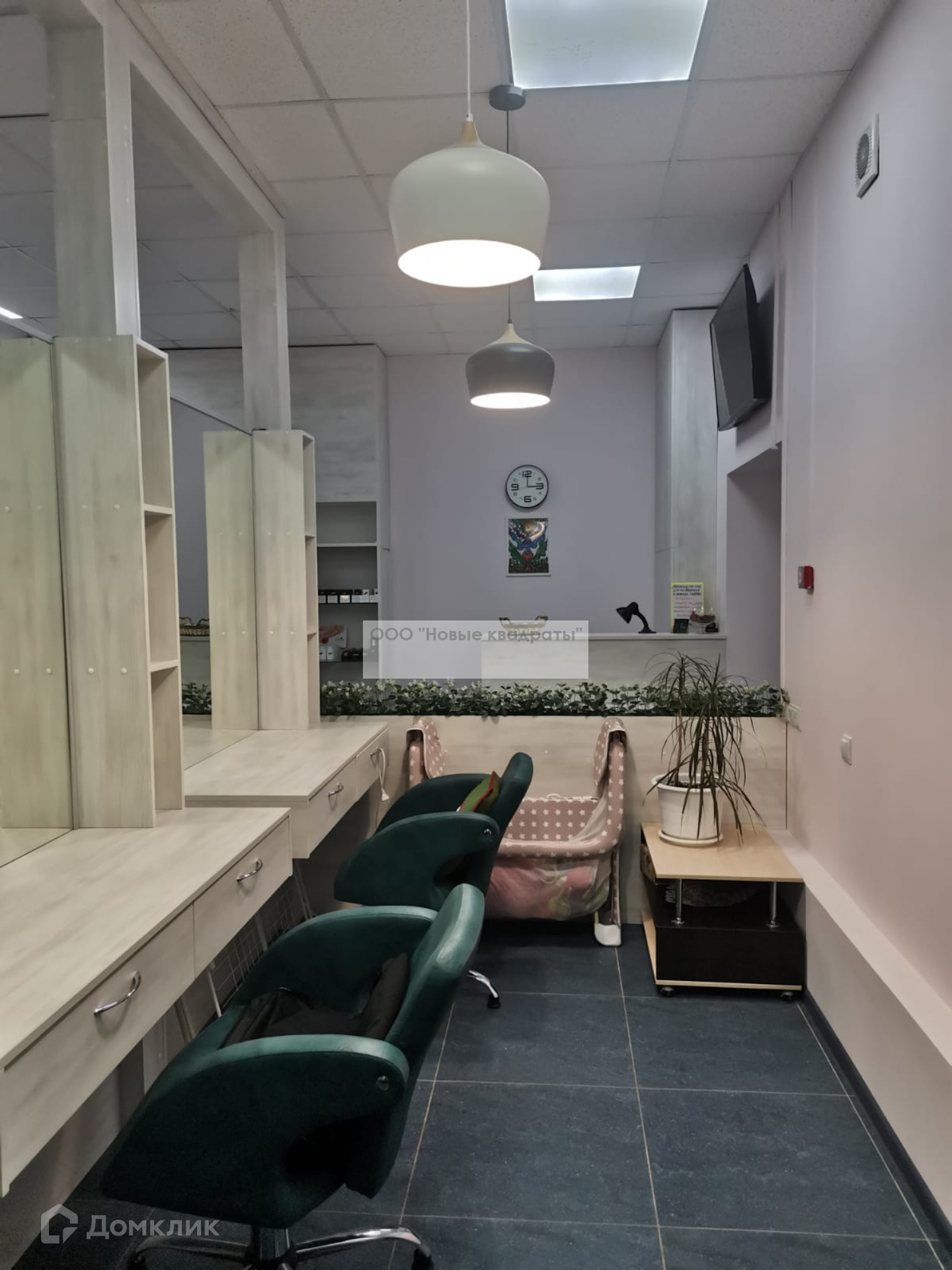 Также в помещении есть небольшая кухня (микроволновка, установлены профессиональные ящики для мастеров с замками, стиральная машина).