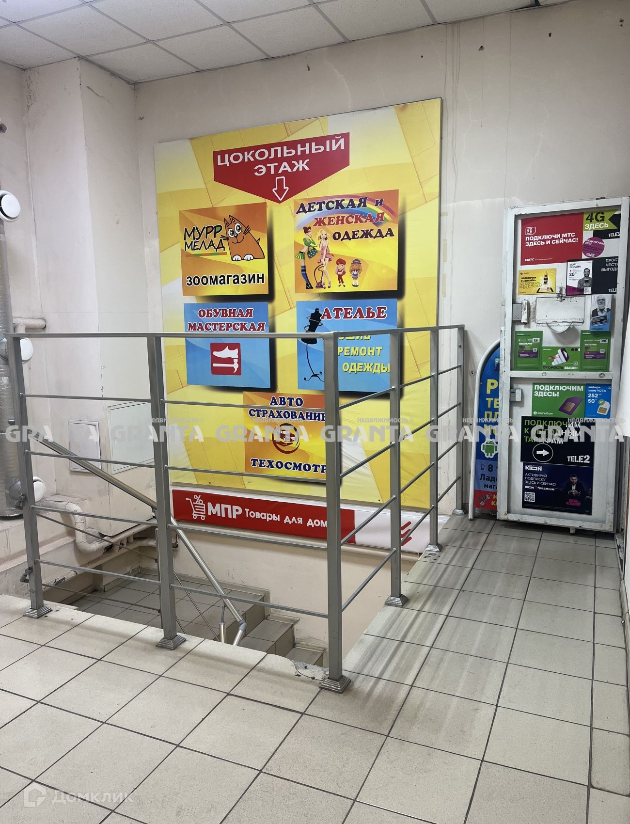 На первом этаже небольшое офисное помещение и туалет, на цокольном огромный торговый зал, площадью 410 кв.м., а также небольшие залы,  площадью 6.5 кв.м.; 6.6 кв.м.; 9 кв.м., а также электрощитовая, лестничная клетка и маленькая подсобка.