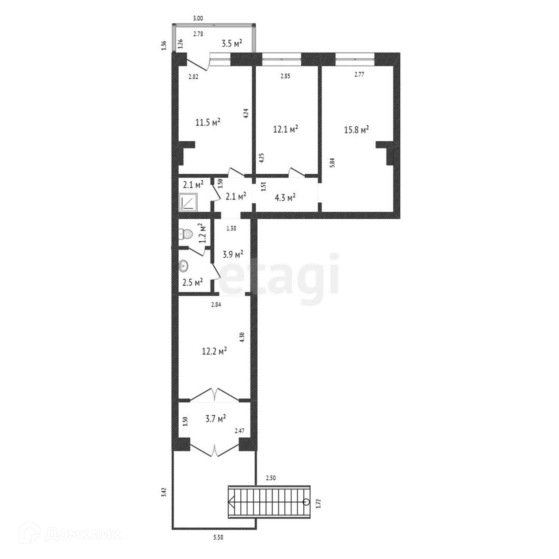 Общая площадь 74.9 м2