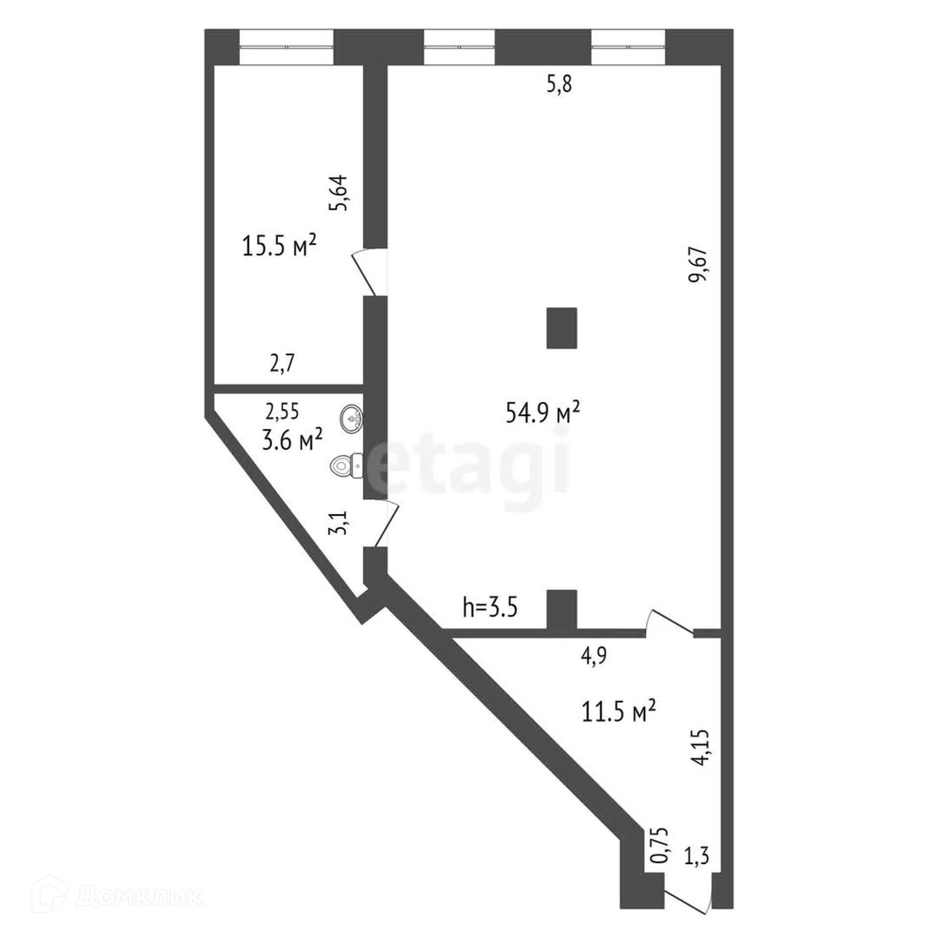 Общая площадь 85.5 м2