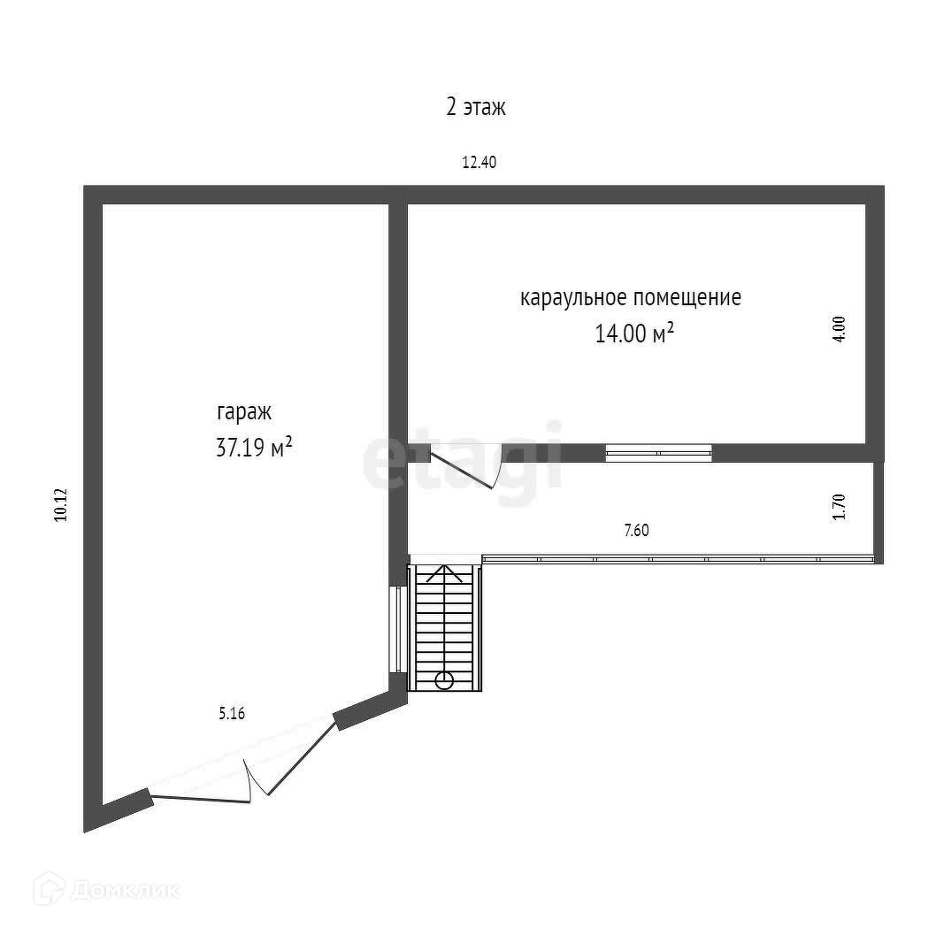 Гараж - 37,195 м2; котельная - 13,506 м2, комната над котельной - 14 м2.