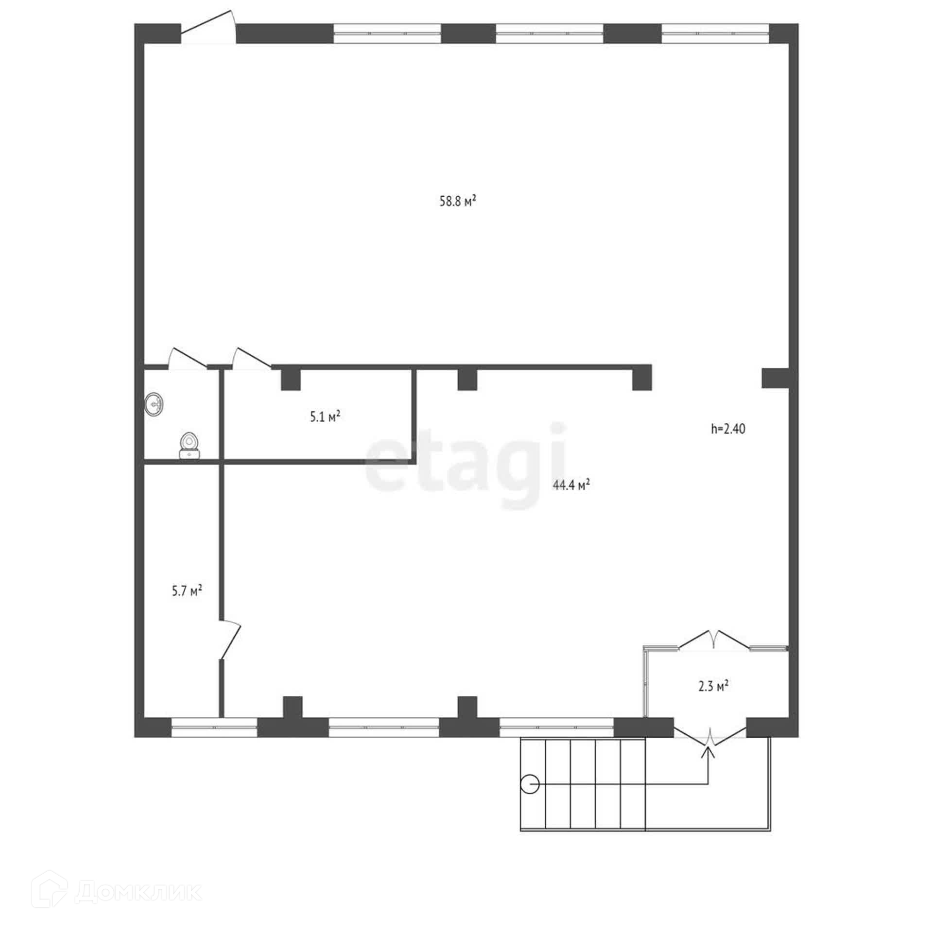 Общая плoщaдь помeщeния - 54 м2