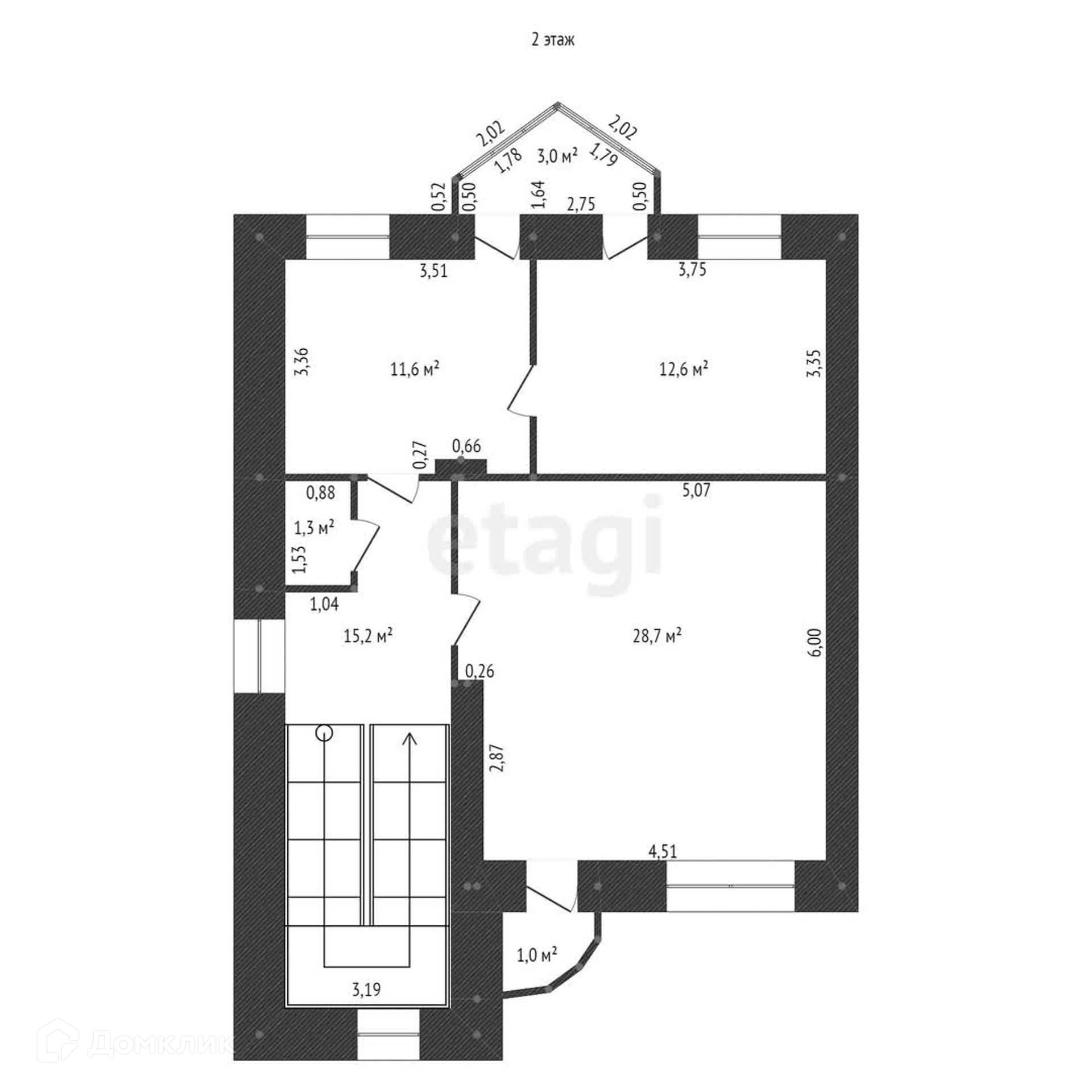 3й этаж: 3 спальни и санузел