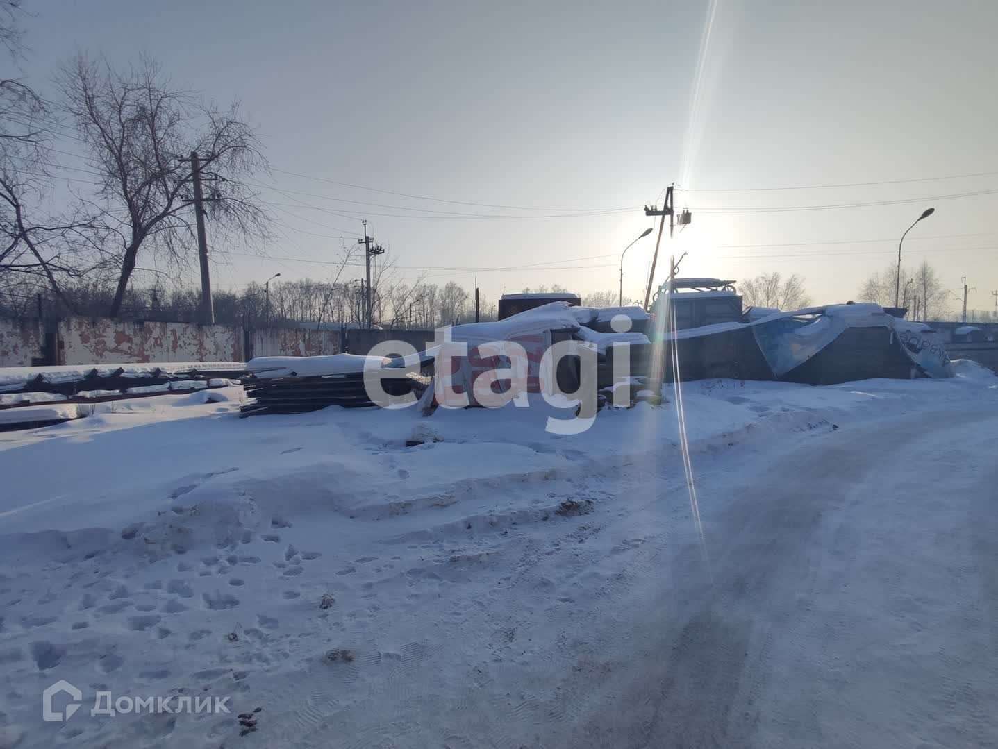 На территории действующий Ж Д. тупик на четыре вагона.