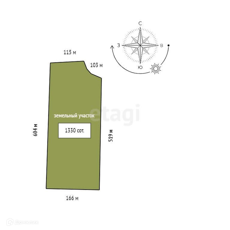 Площадь участка 1330 сот.