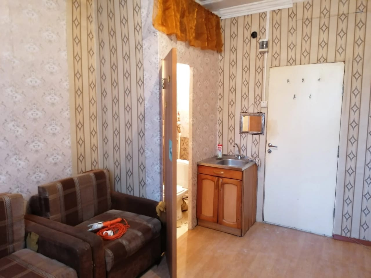 Сдам Гостинку ост.ДК Кировский. Состояние хорошее, окно пвх, пол-ламинат, есть туалет, раковина (мойка), (душ общий на 4 комнаты), эл/плита, стиралка, два кресло-кровати, стол, стулья. Диван, шкаф, холодильник можно купить! 8000 ВСЁ ВКЛЮЧЕНО!!! Комиссия 60%. С а.н. не работаю!!!