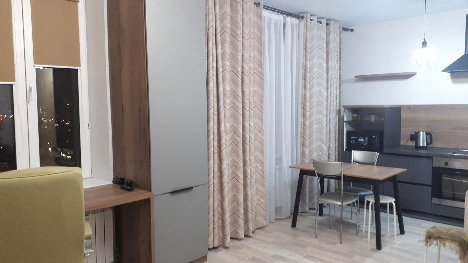 Предлагается в аренду 1-комн. студия ул. Взлетная 7Л на 15-м этаже 25-ти этажного кирпичного дом 2021г. постройки.  Дом повышенной комфортности. Отличное состояние квартиры. Сделан качественный ремонт. В квартире есть все необходимое  для комфортного проживания. Вся техника, мебель - новая. Сдаем на длительный срок. 25000+счетчики.